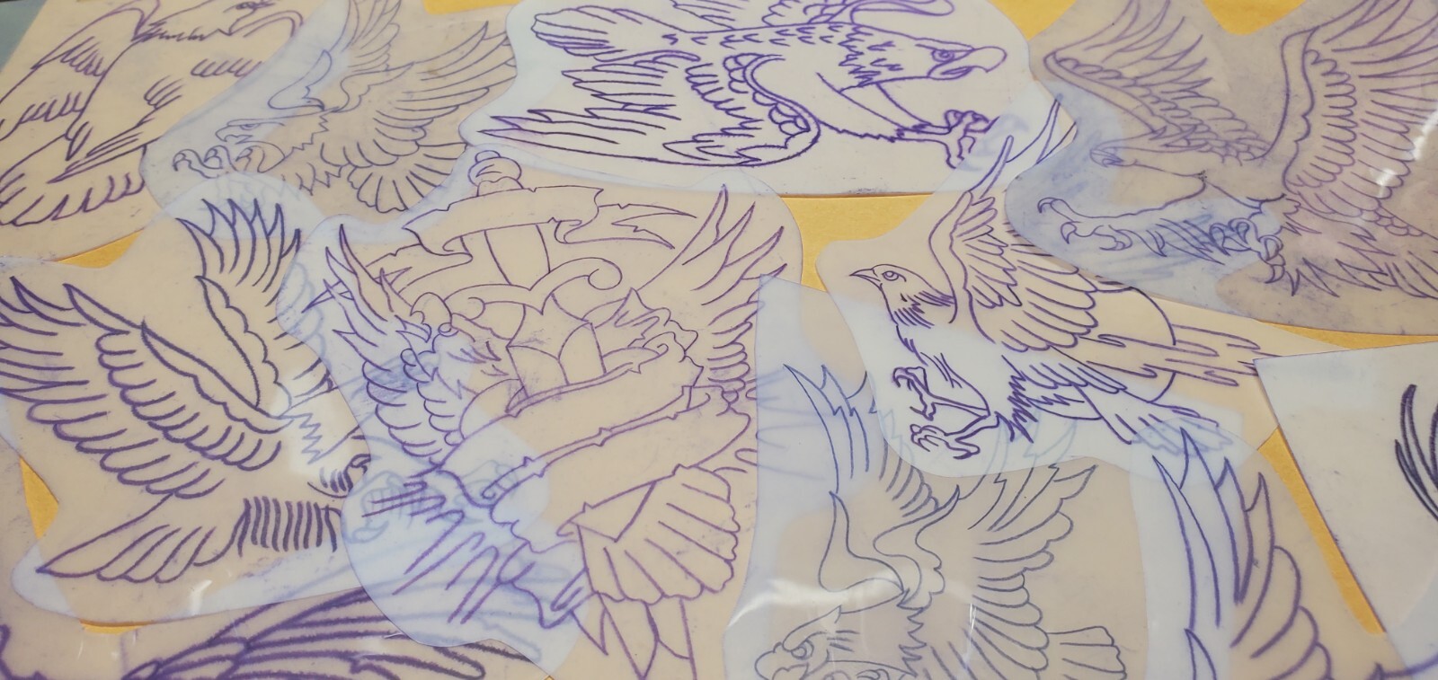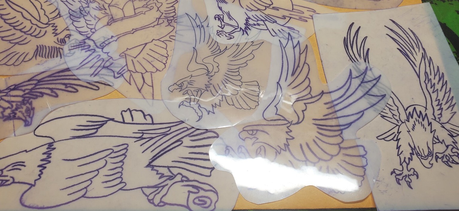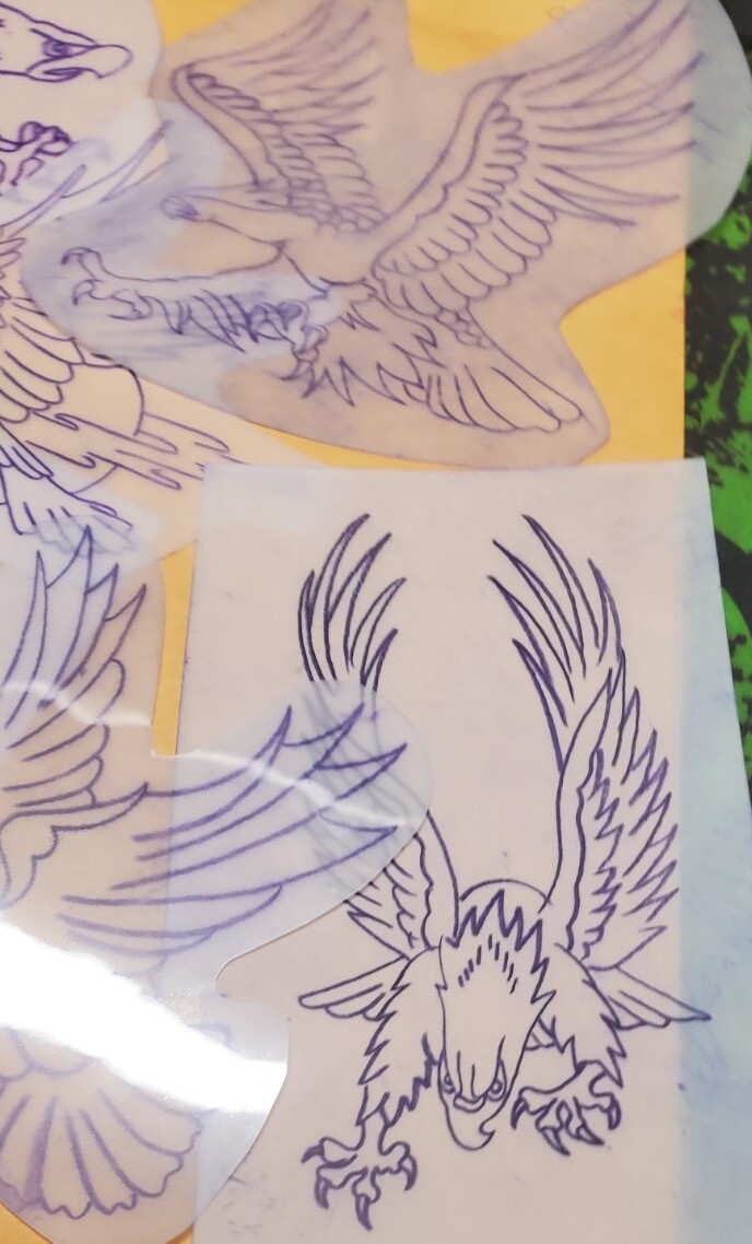 1970s 1980s Acetate Stencil Eagles Used By RED'S TATTOO STUDIO From Flash Lot 4