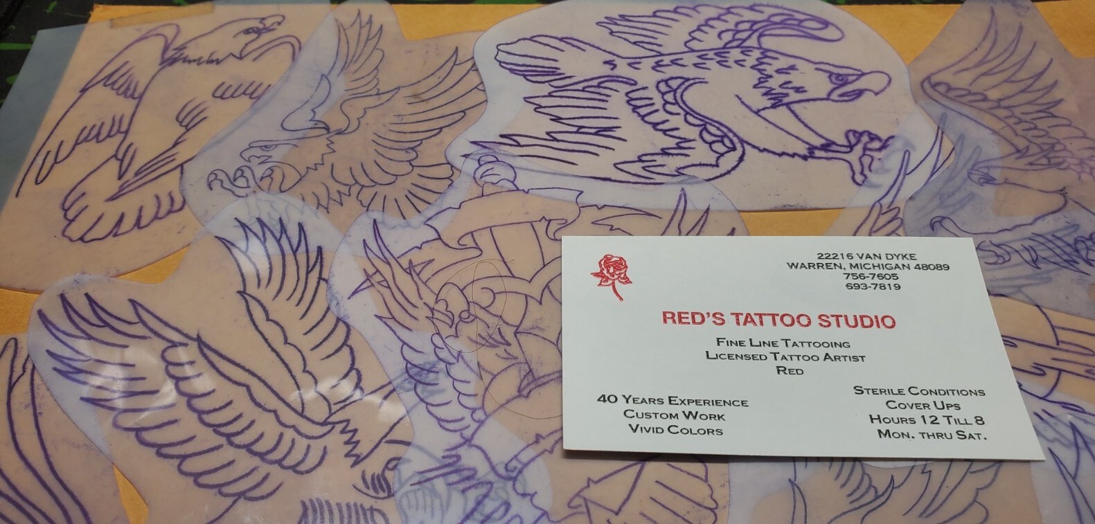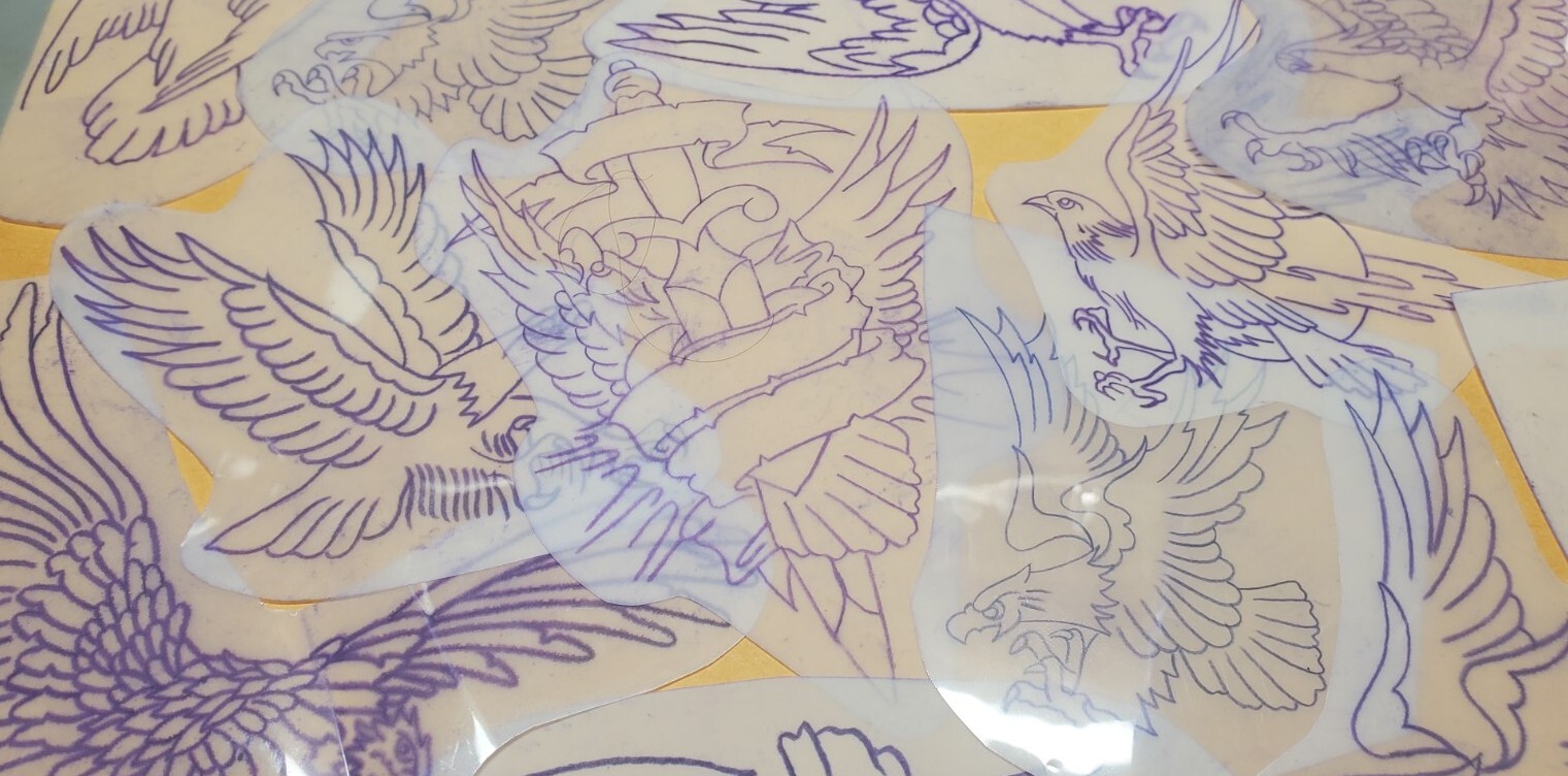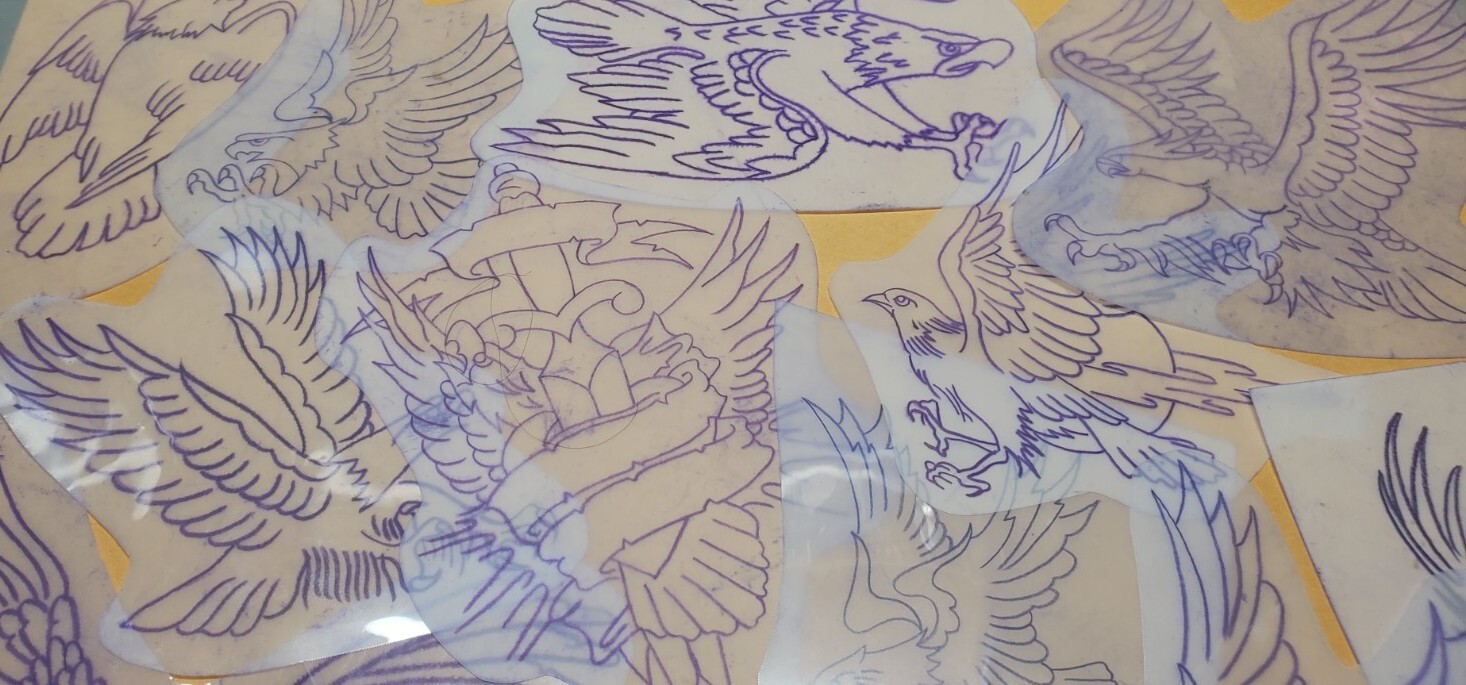 1970s 1980s Acetate Stencil Eagles Used By RED'S TATTOO STUDIO From Flash Lot 4