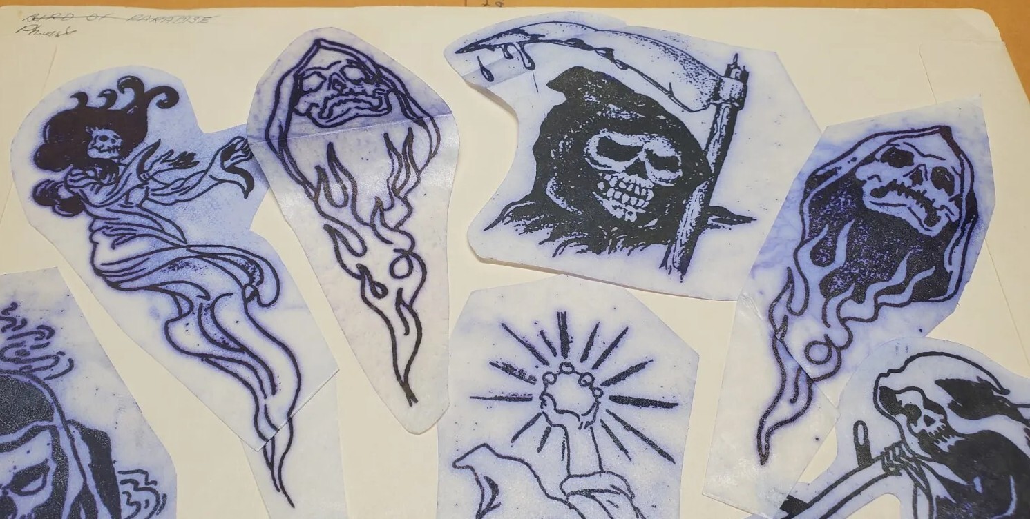 как выглядит Vintage Tattoo Hectograph Stencil of The Grim Reaper Used By REDS TATTOO STUDIO фото