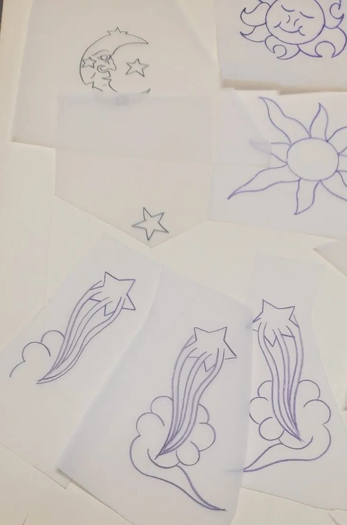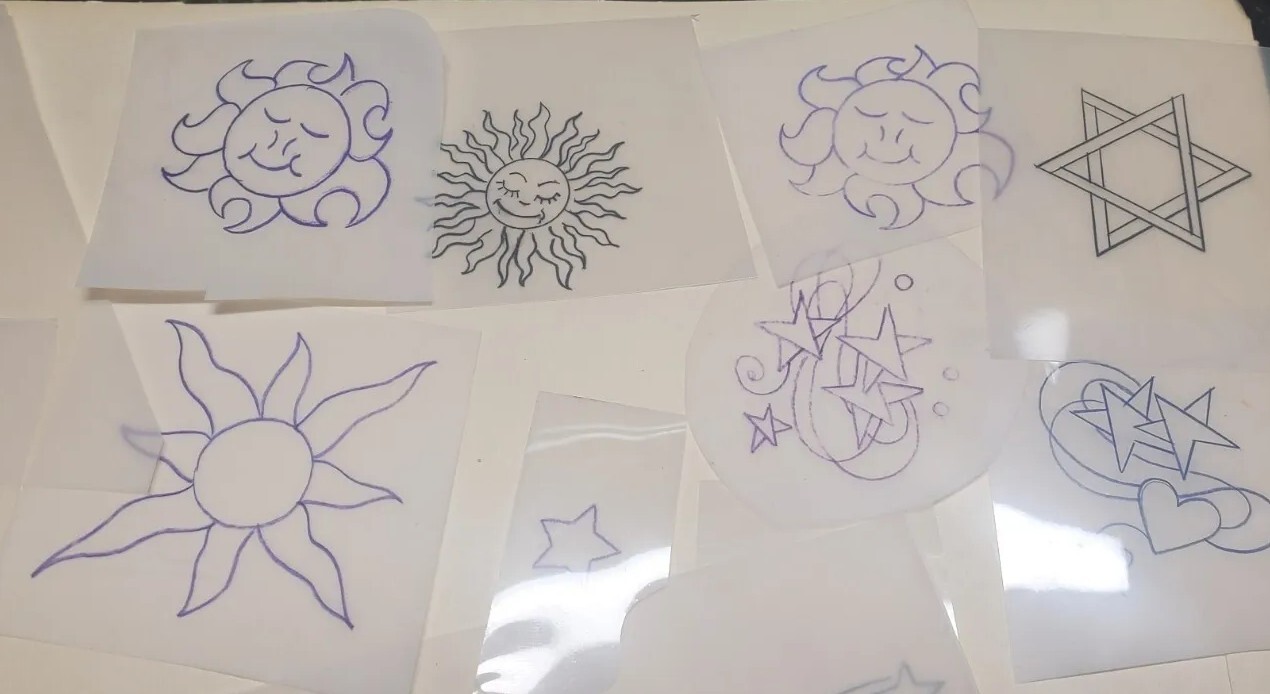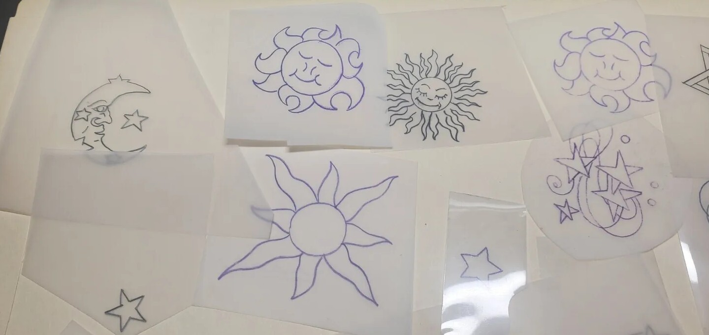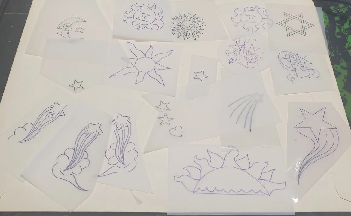 Vintage 1970s 1980s Tattoo Acetate Sun Moon Stars From RED'S TATTOO STUDIO