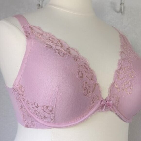 как выглядит Ambrielle Bra 40DDD Pink Lilac Plunge Push Up Lightly Lined Underwire фото