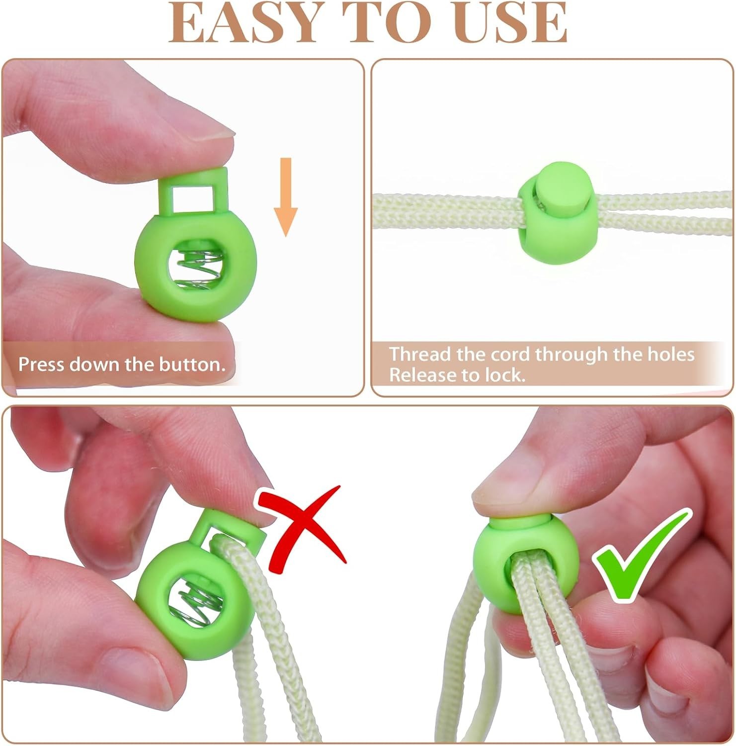 Plastic Cord Locks for Drawstrings Shoelaces, 100 Pcs Adjustable Round Cord S...