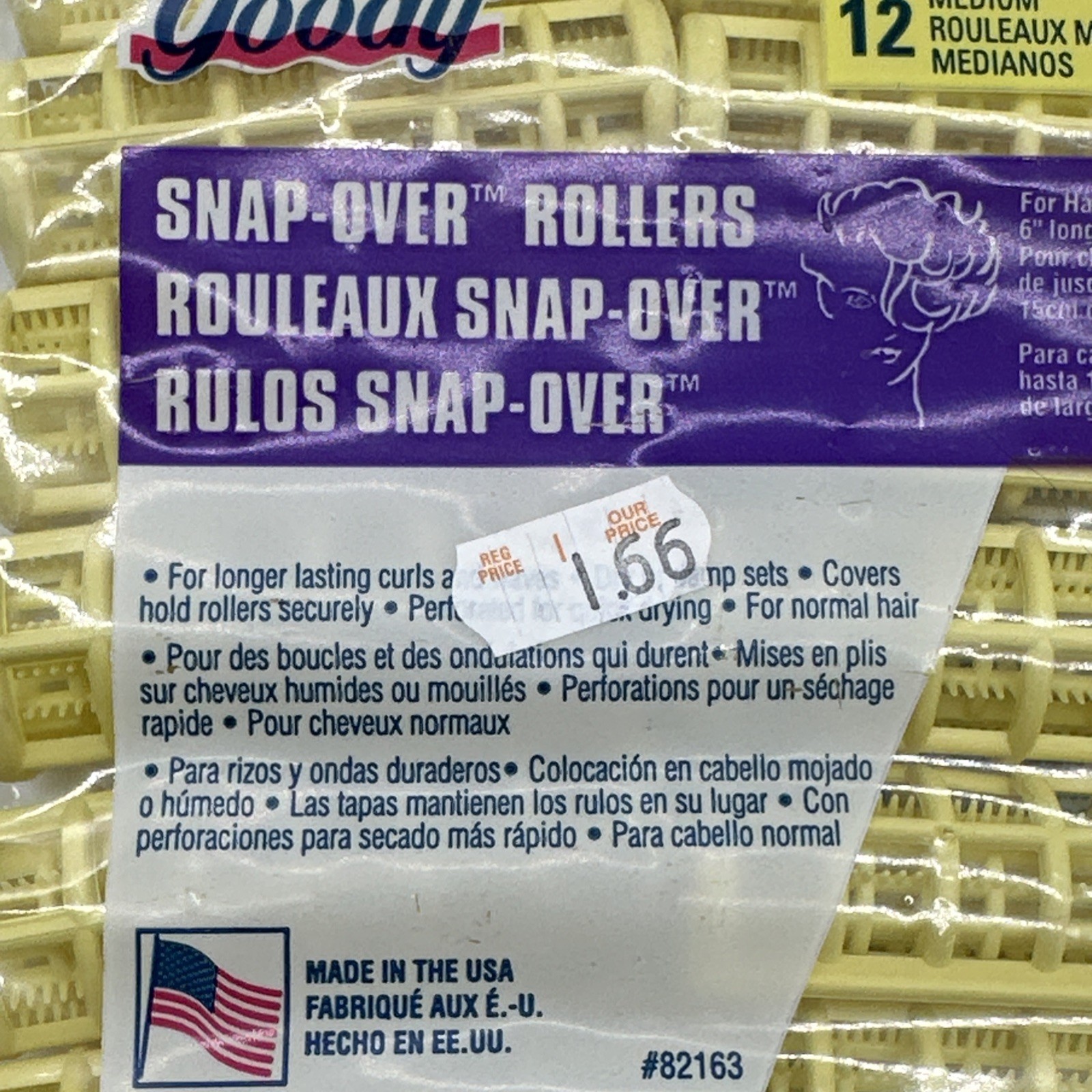 Vintage Goody Snap-Over Hair Rollers Pack Of 12 Medium 82163 NEW