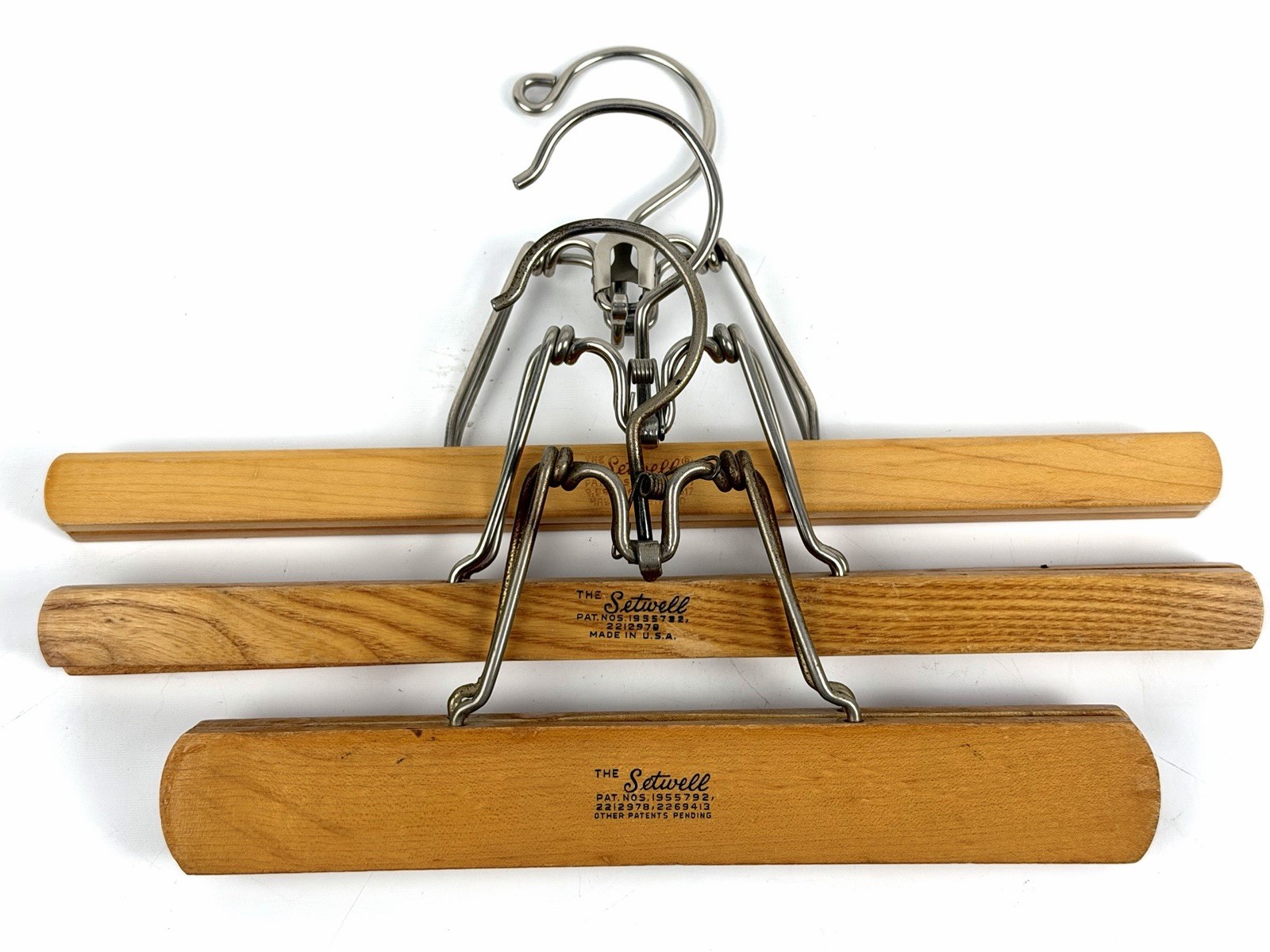 Lot of 3 Vintage The SETWELL Wooden Pant Skirt Hangers MCM
