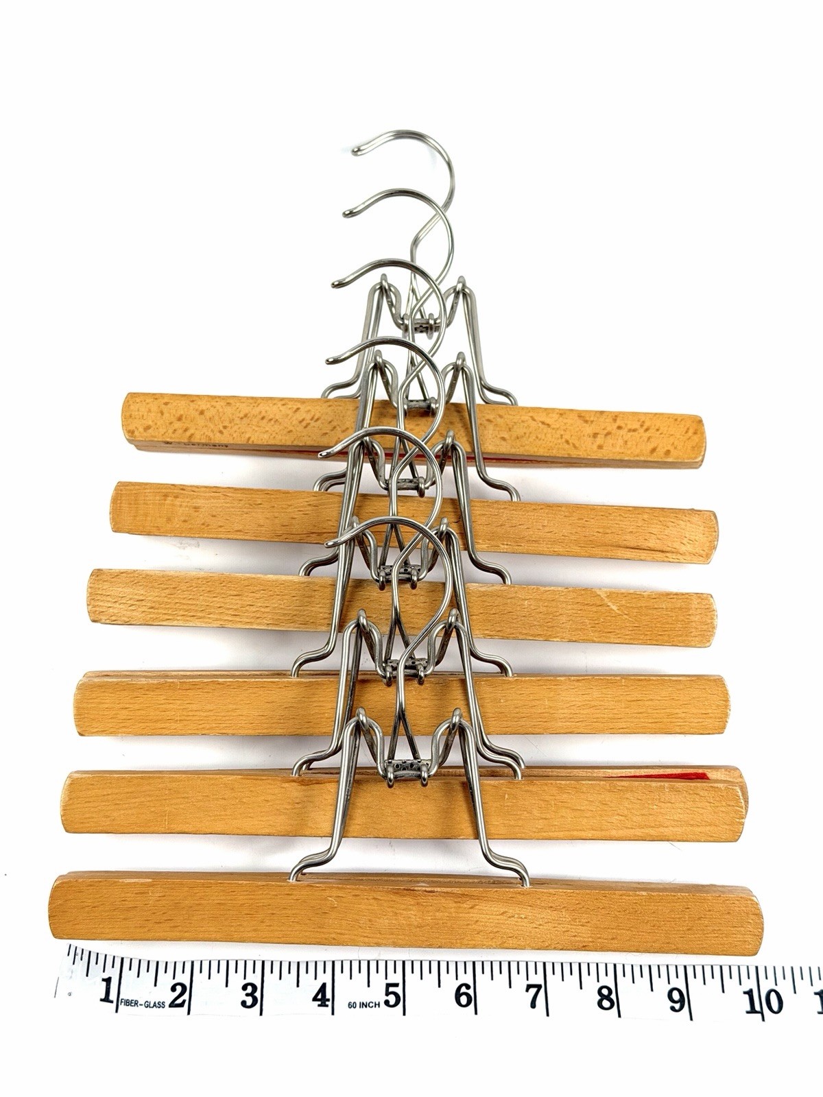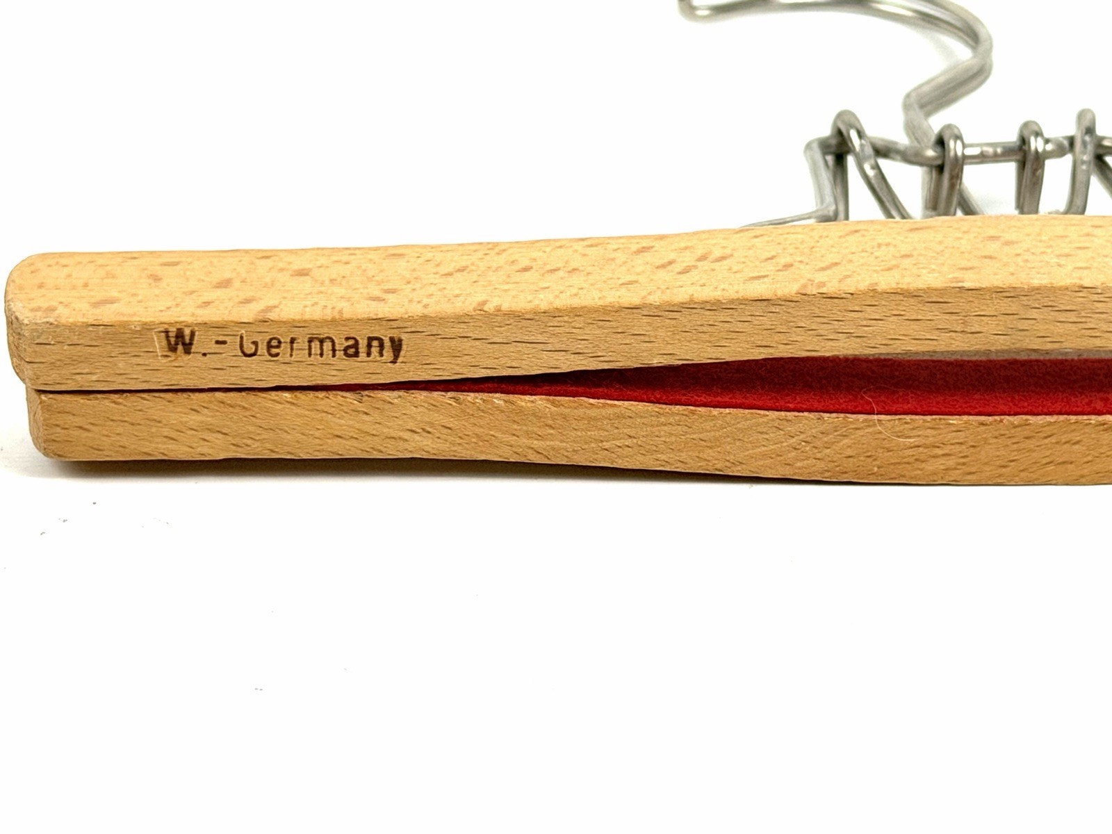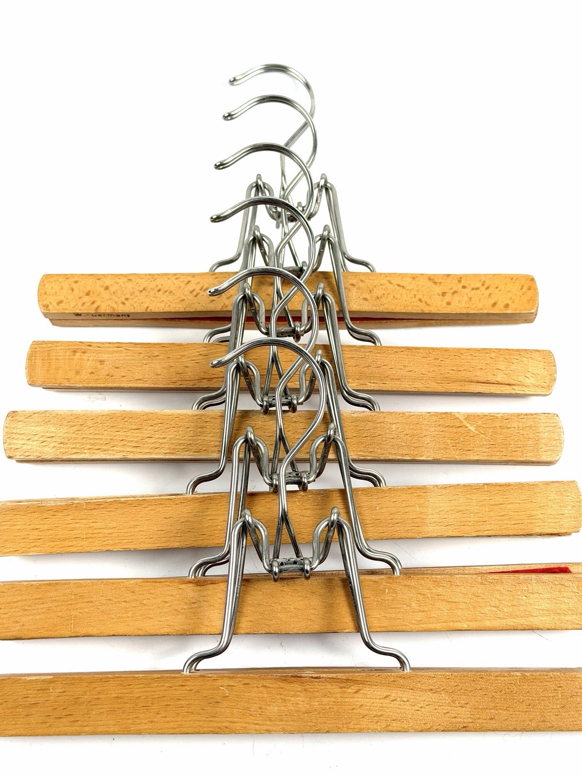 Vintage Lot Of 6 Wooden Clamp Clothes Hangers Pants Skirts Made In W. Germany