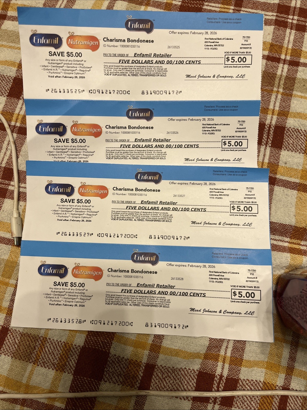 как выглядит 4 5.00 Enfamil Coupons. Expires On 2-28-2026 20 In Coupons In Total фото