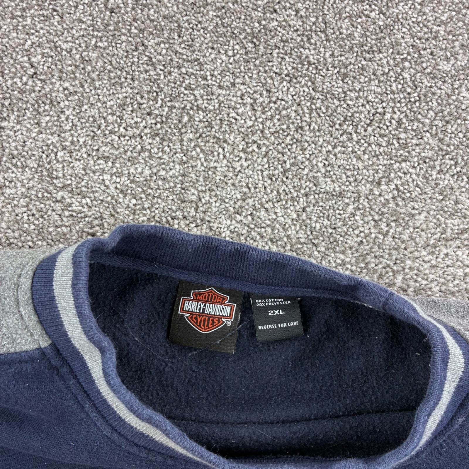 Vintage Y2K Harley Davidson Sweatshirt Mens 2XL Blue Gray Blank Distressed