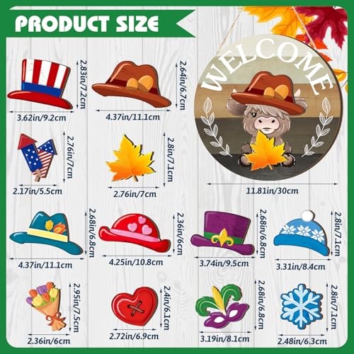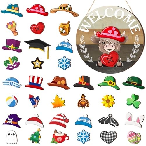 35 Pcs Holiday Interchangeable Highland Cow Welcome Sign Highland Light Brown