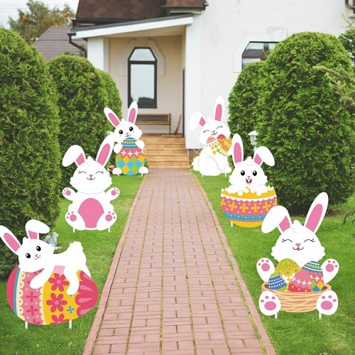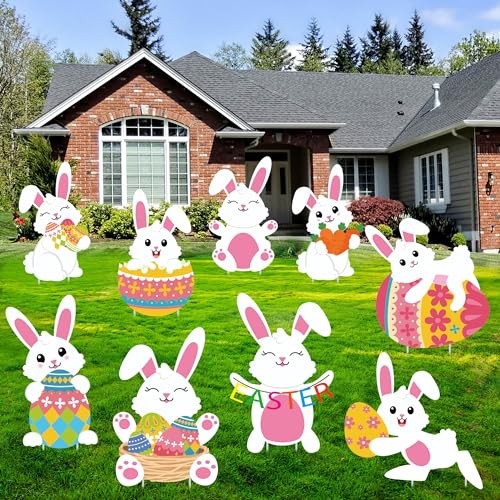 9 PCS Easter Yard Signs Easter Bunny Outdoor Sign with Stakes Bunny Egg Garden