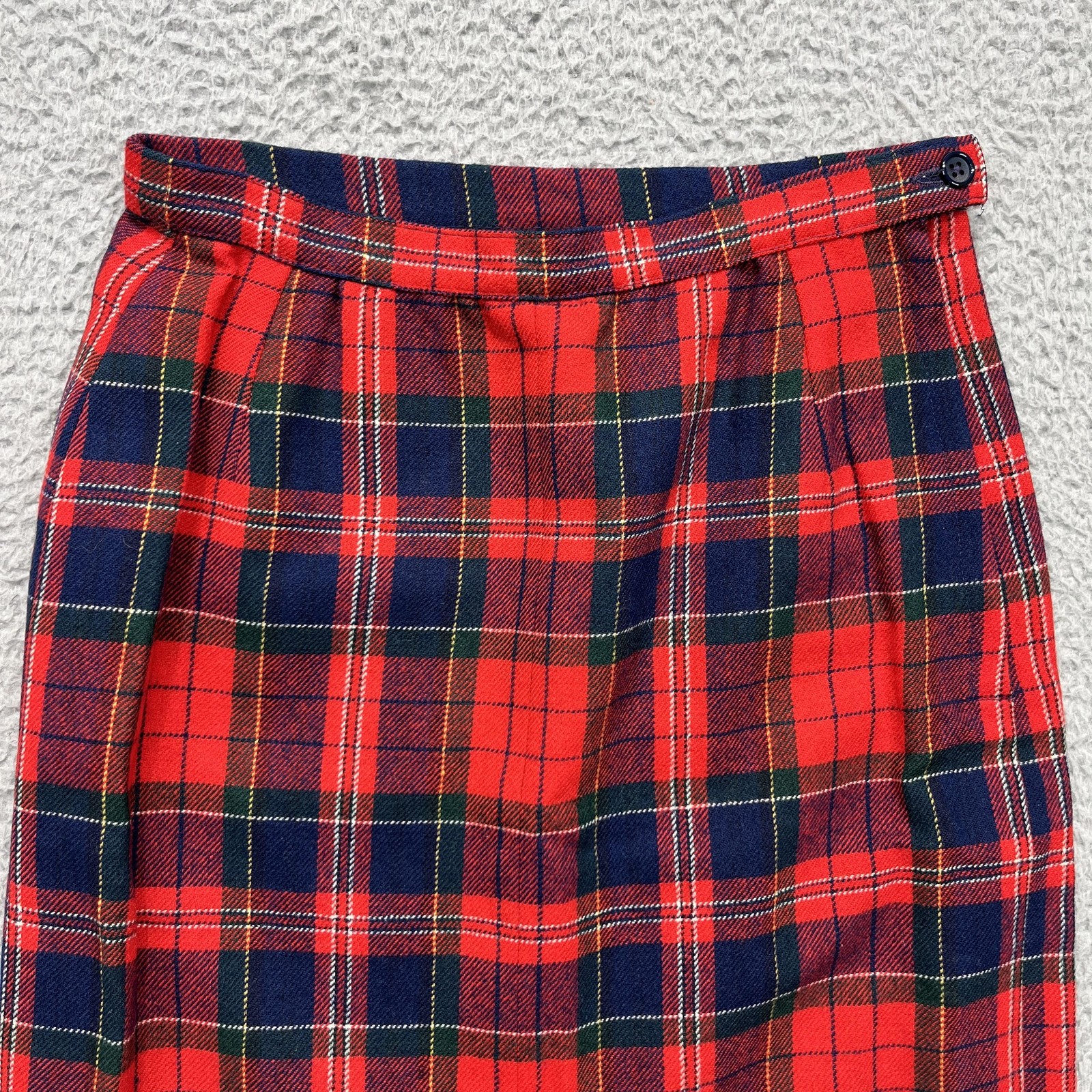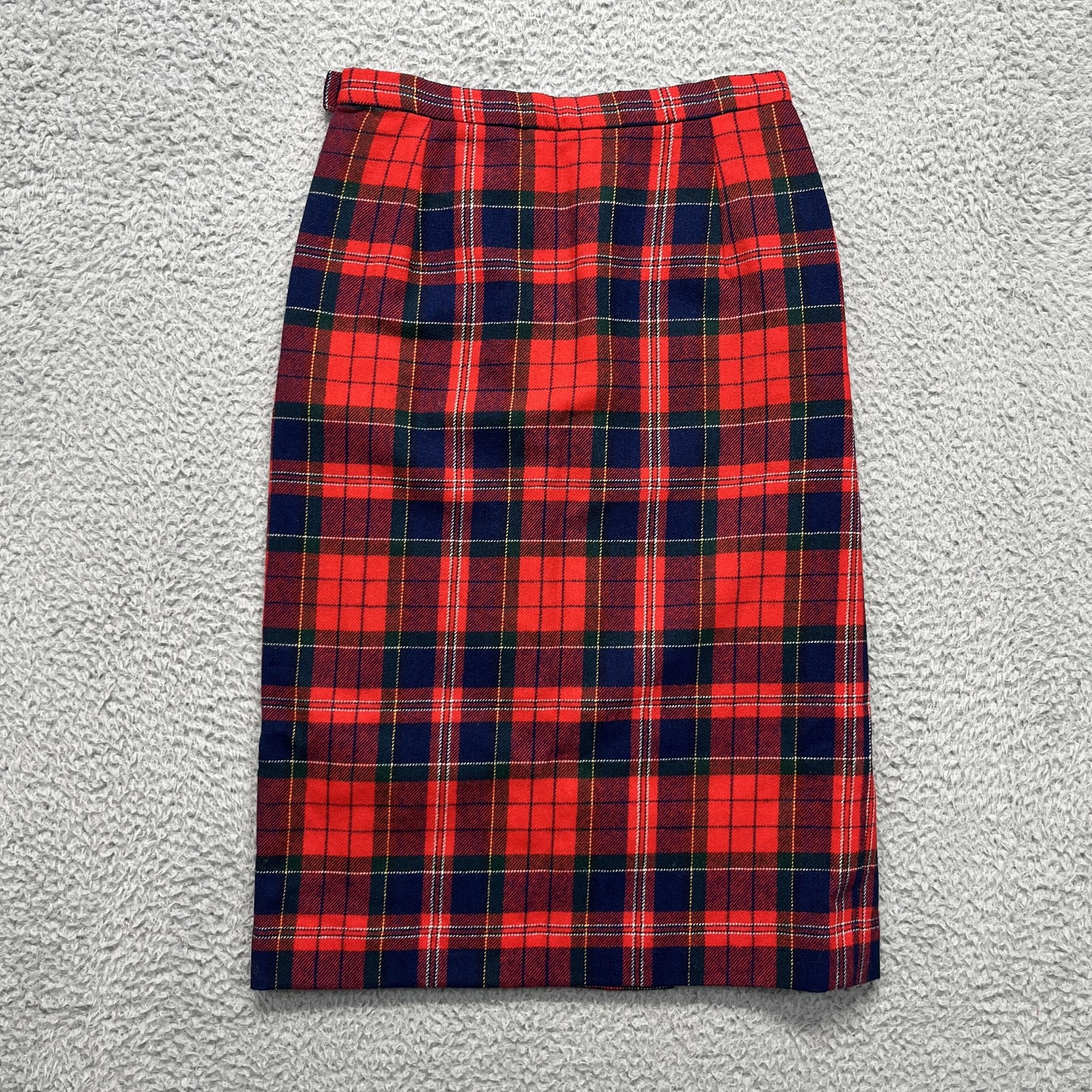 Vintage Pendleton Wool Skirt Womens 10 Red Plaid High Rise Knee Pencil USA 70s
