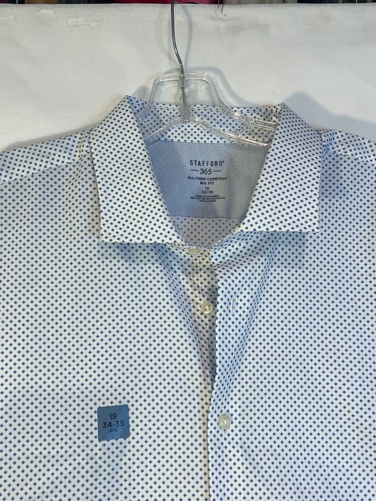 как выглядит Stafford 365 Casual Button-Up Mens Blue 19 34/35 Big Fit All-Temp Comfort NWT фото