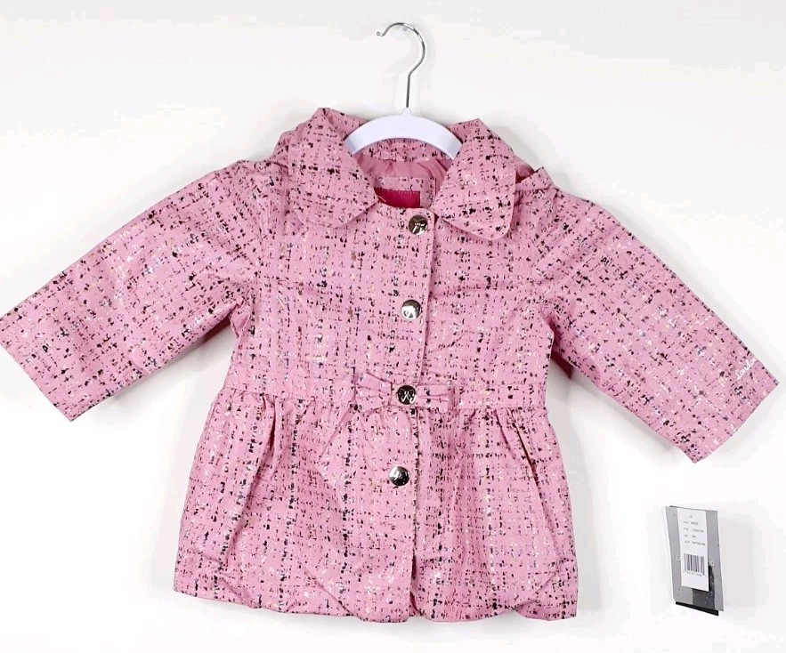 как выглядит London Fog Toddler Girl Pink Tweed Printed Raincoat Snap Front w Bow Sz 24M фото