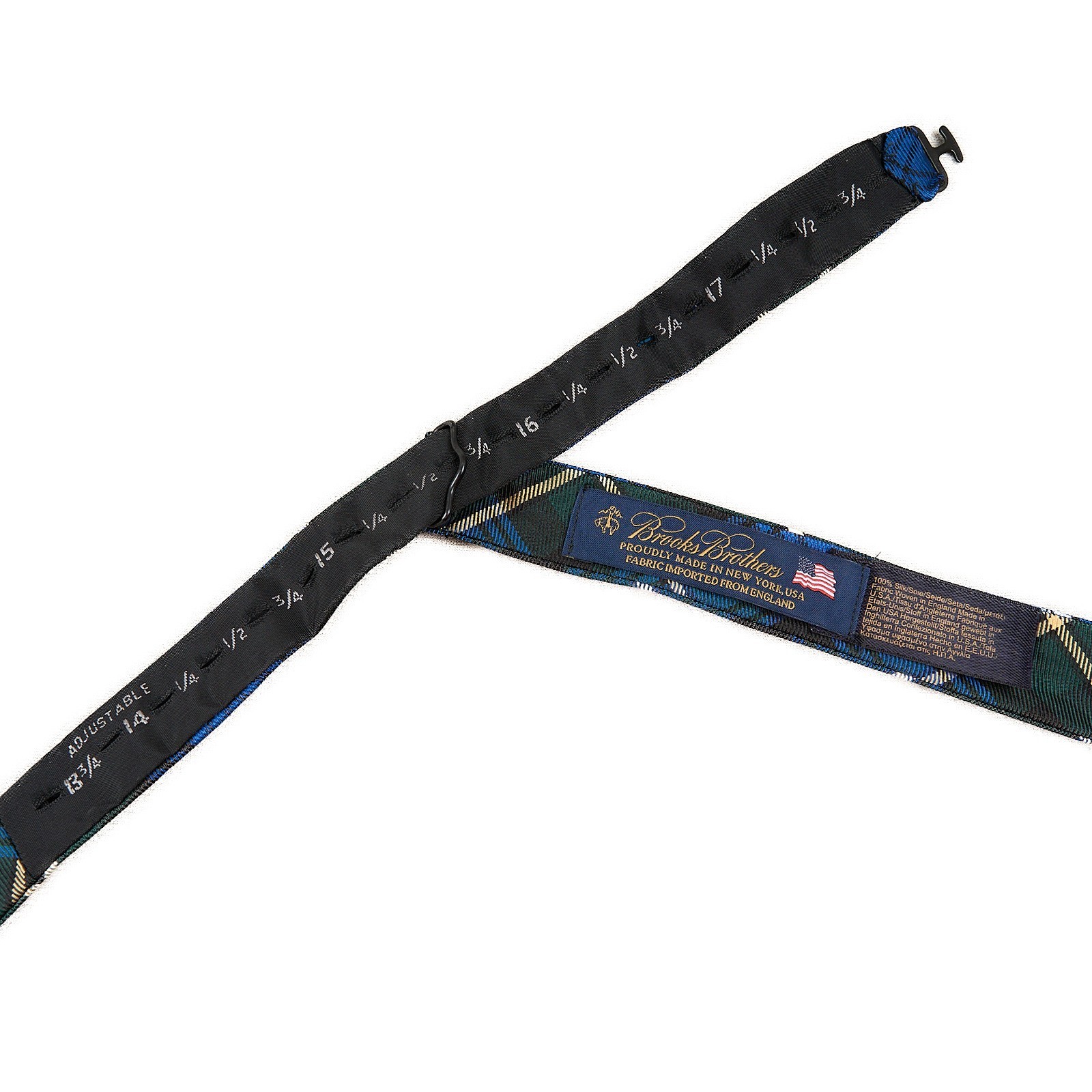 Brooks Brothers Silk Bow Tie Blue Green Plaid Adjustable Self Tie USA NEW