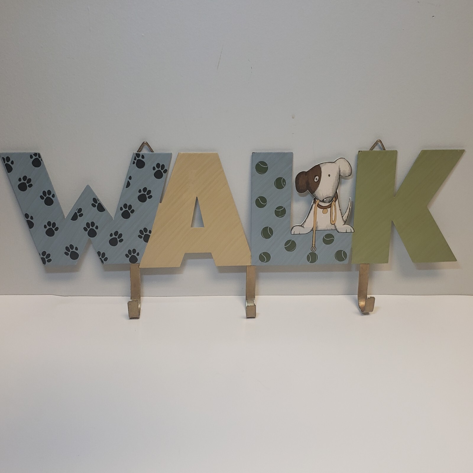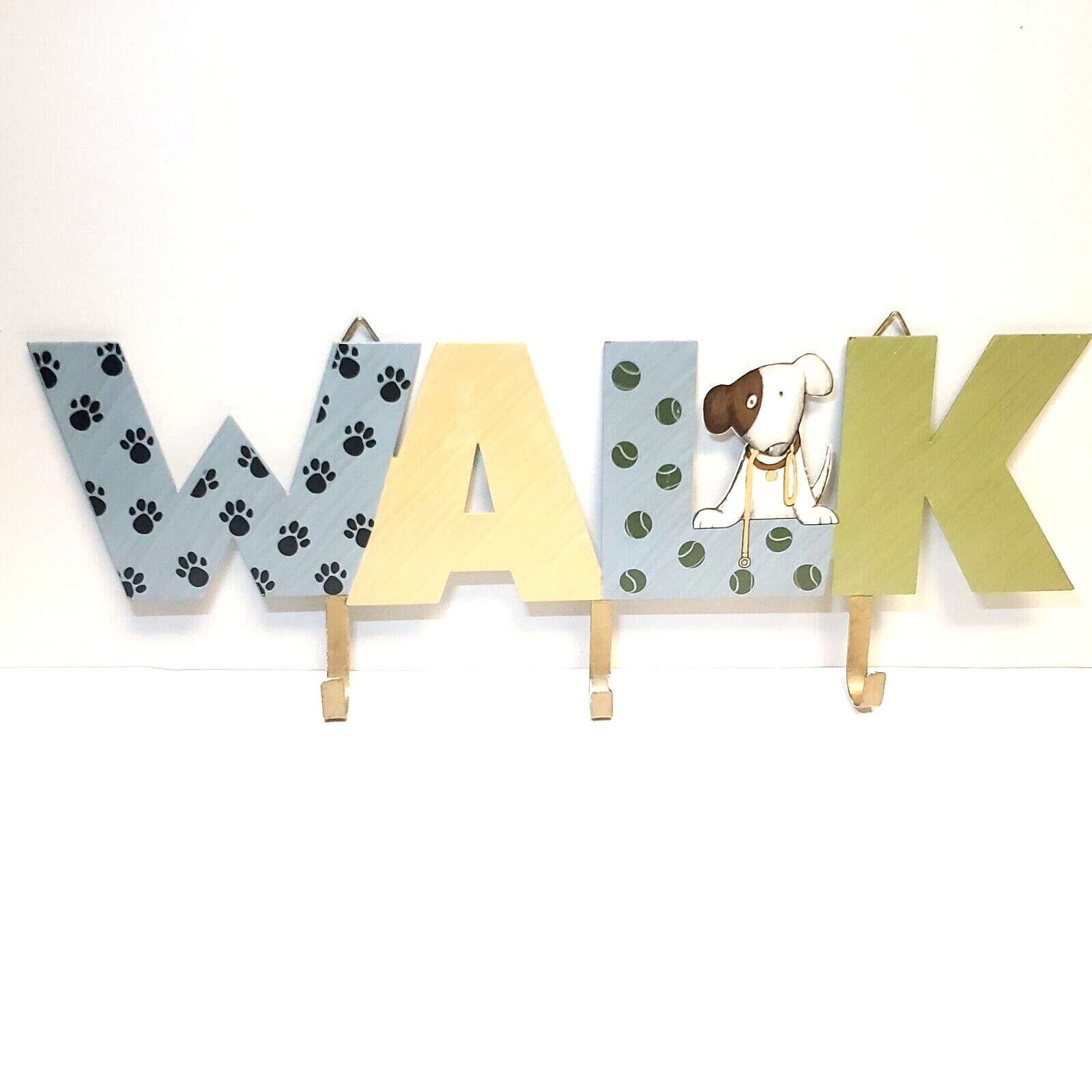 • Dog Wall Plaque Leash Hooks Holder WALK Wall Hanger Metal Paws 17.7 X 7"