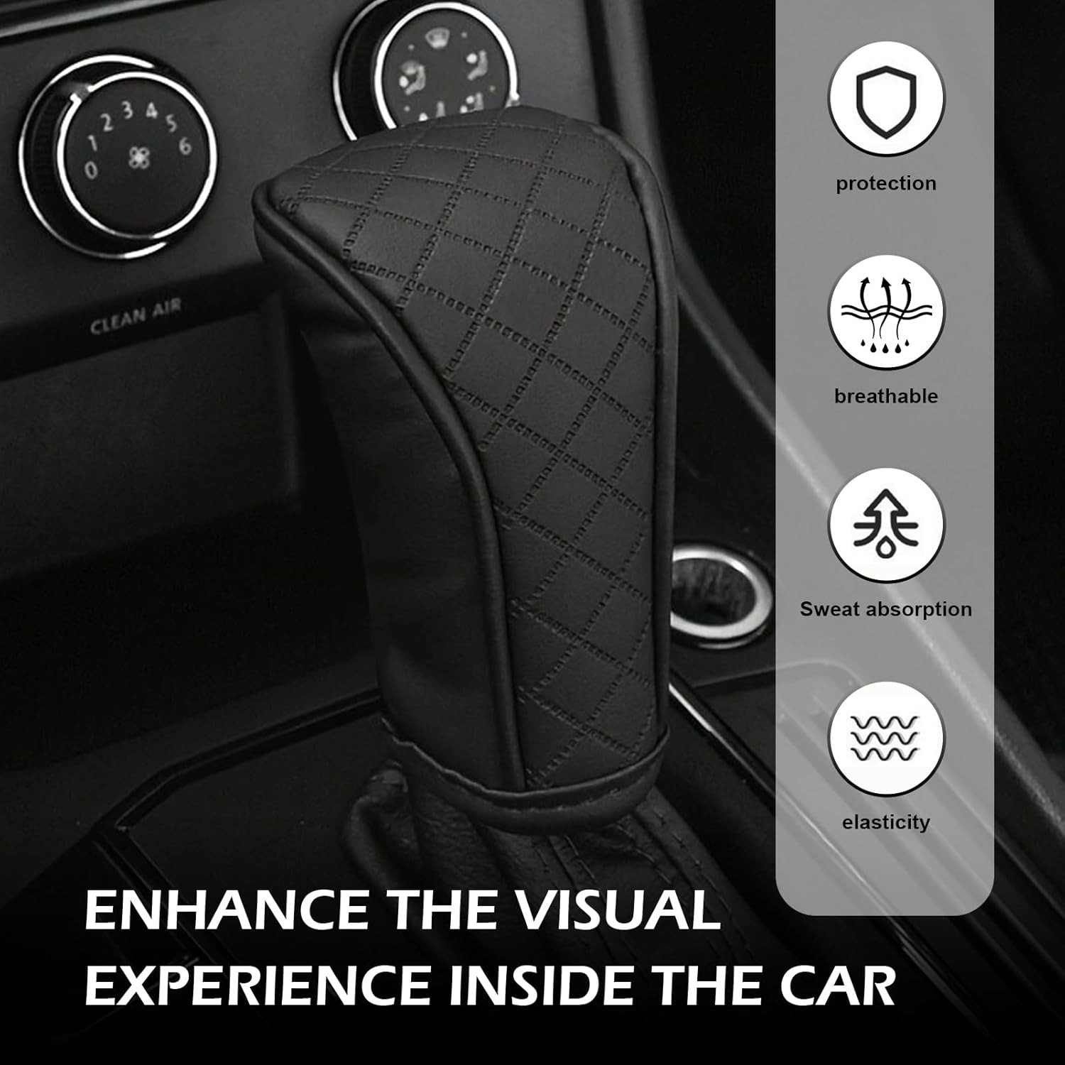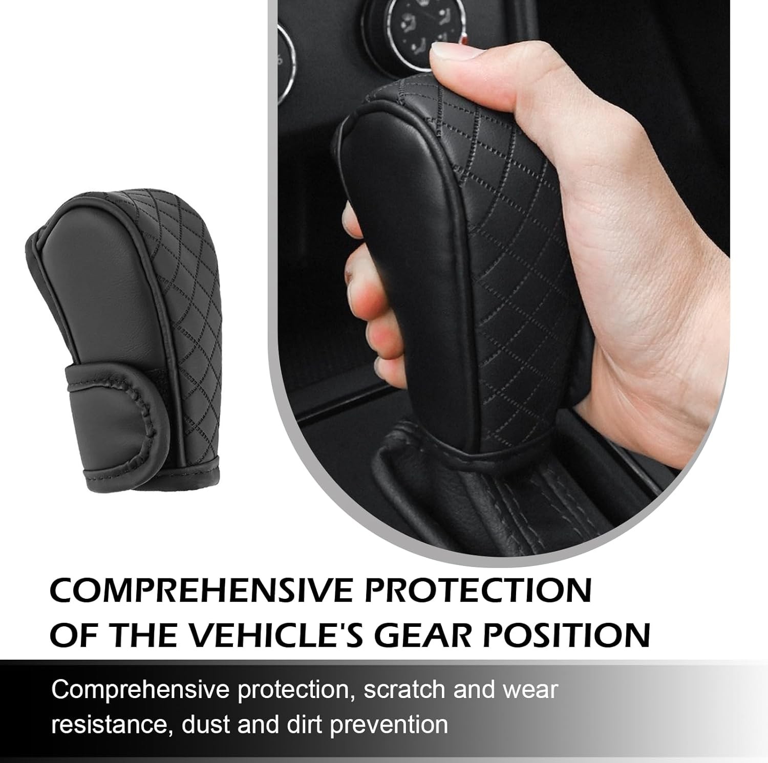 как выглядит Car Gear Shift Cover, Leather Shift Cover, Waterproof Dust Anti-Slip Gear-black фото