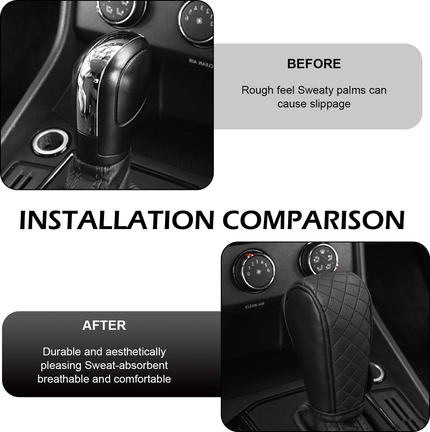 Car Gear Shift Cover, Leather Shift Cover, Waterproof Dust Anti-Slip Gear-black