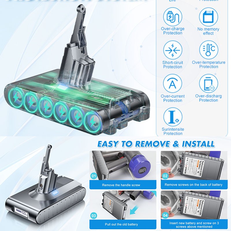 9500mAh For Dyson V8 Replacement Battery SV10 V8 Absolute Animal Cord-Free LED