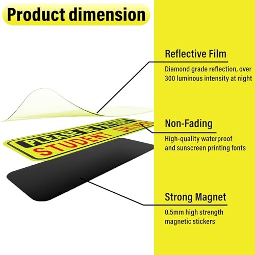 4 PCS Student Driver Magnet for Car, New Driver Magnet for Car, Black/Yellow