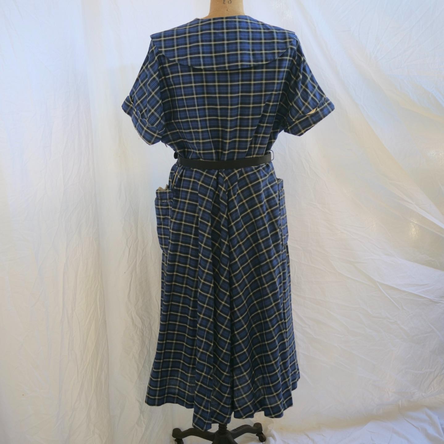 как выглядит Vtg 50s BEA YOUNG Blue Plaid Shirtwaist Full Cotton Swing Dress Rockabilly 22 фото