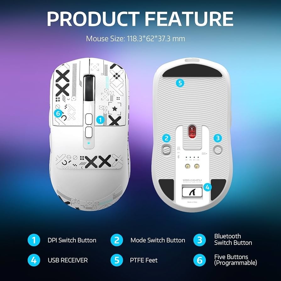 как выглядит ATTACK SHARK R1 Wireless Gaming Mouse Tri-Mode Bluetooth 2.4G Wired 18000 DPI фото