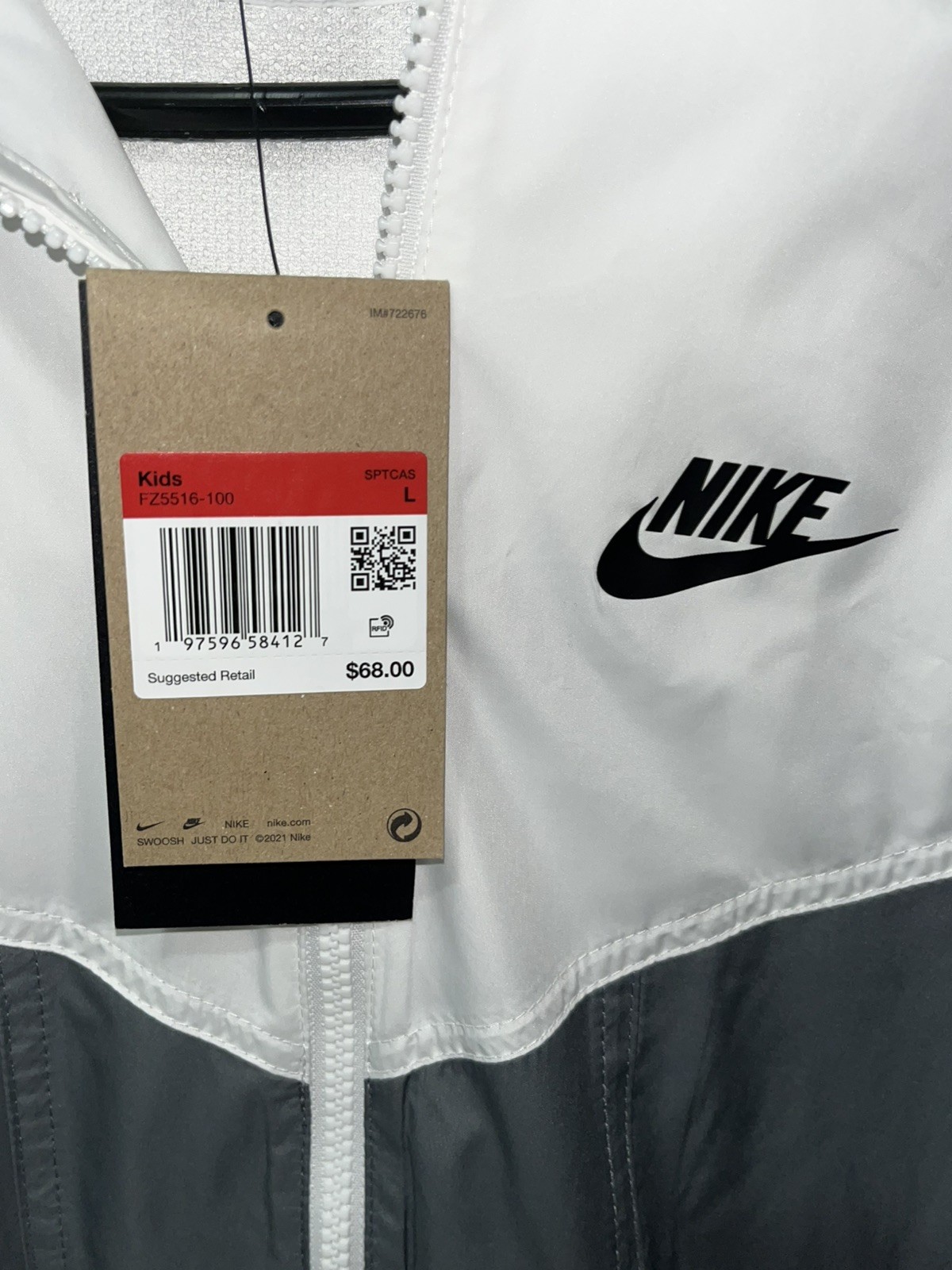 New Nike Black Gray Windrunner Big Kids Hooded Jacket Size L Large FZ5516-100