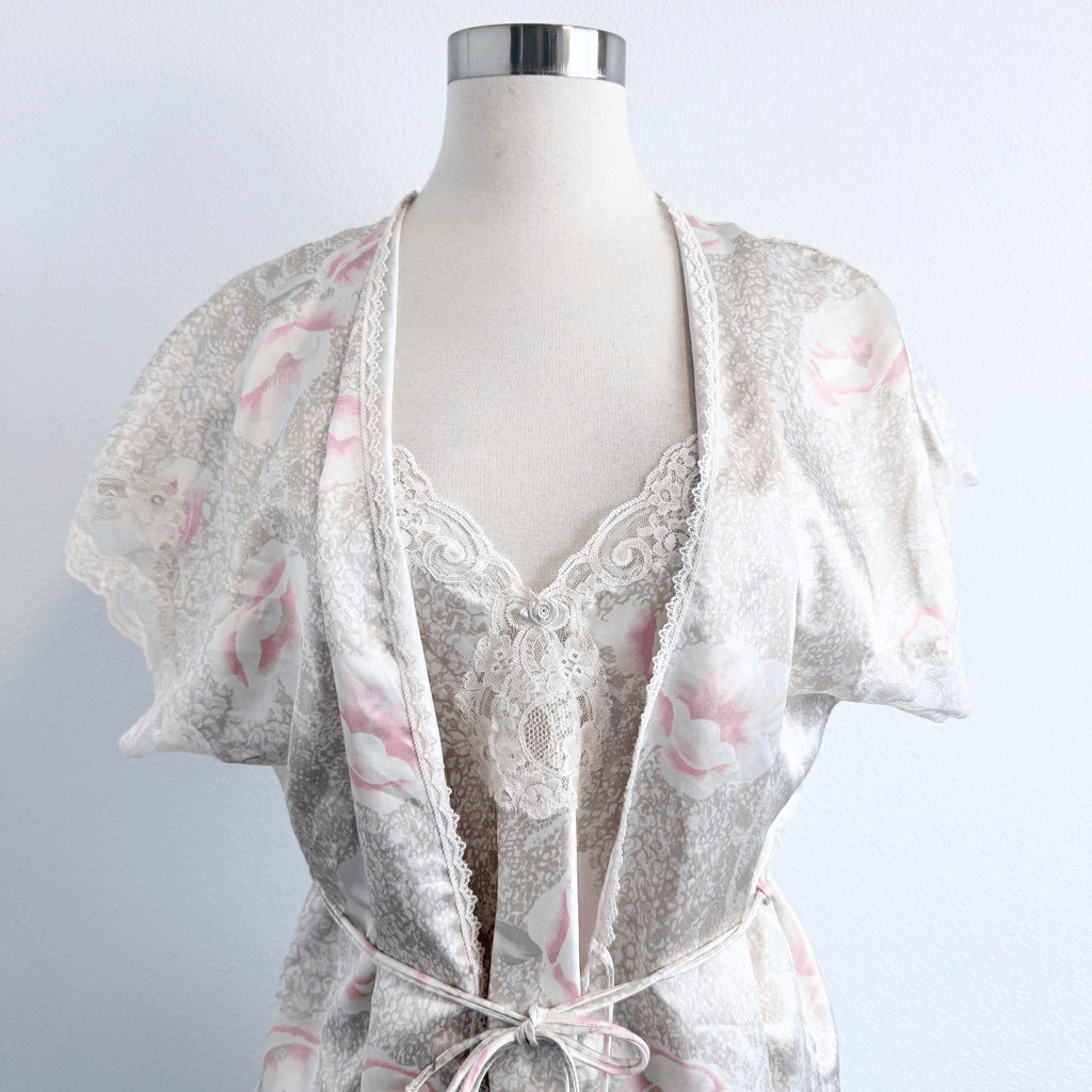 Indulgence Satin Peignoir Set Snakeskin Robe Lace Slip Dress Nightgown Small