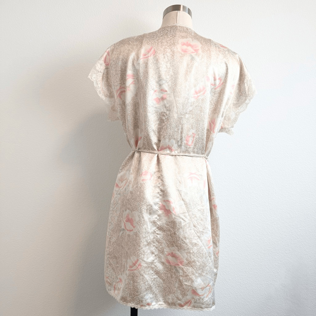 как выглядит Indulgence Satin Peignoir Set Snakeskin Robe Lace Slip Dress Nightgown Small фото