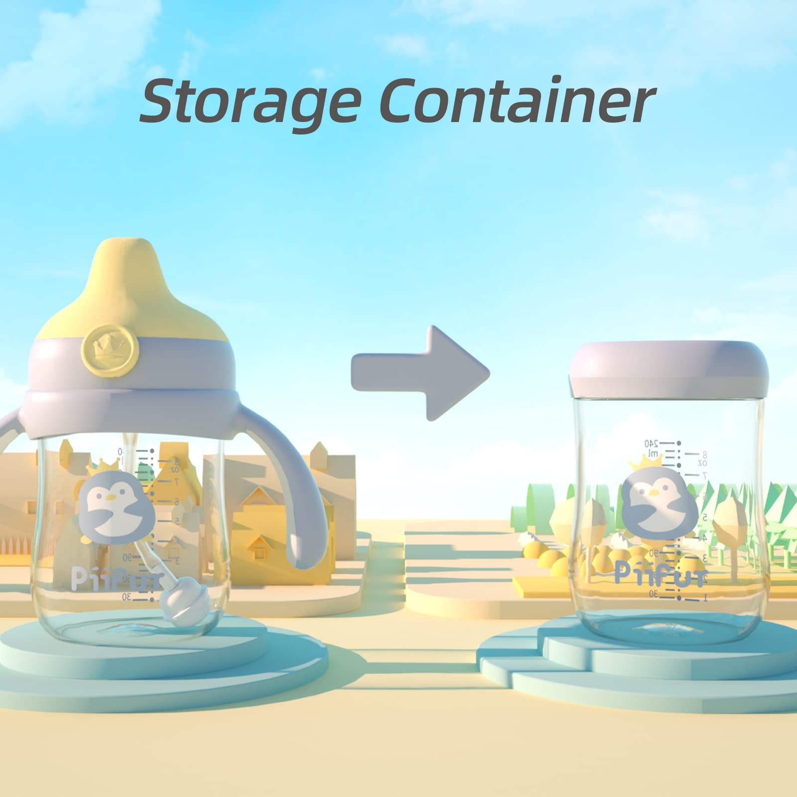 Included Components: Sippy Cup Lid, Storage Lid, Nipple, Straw Set, Bottle