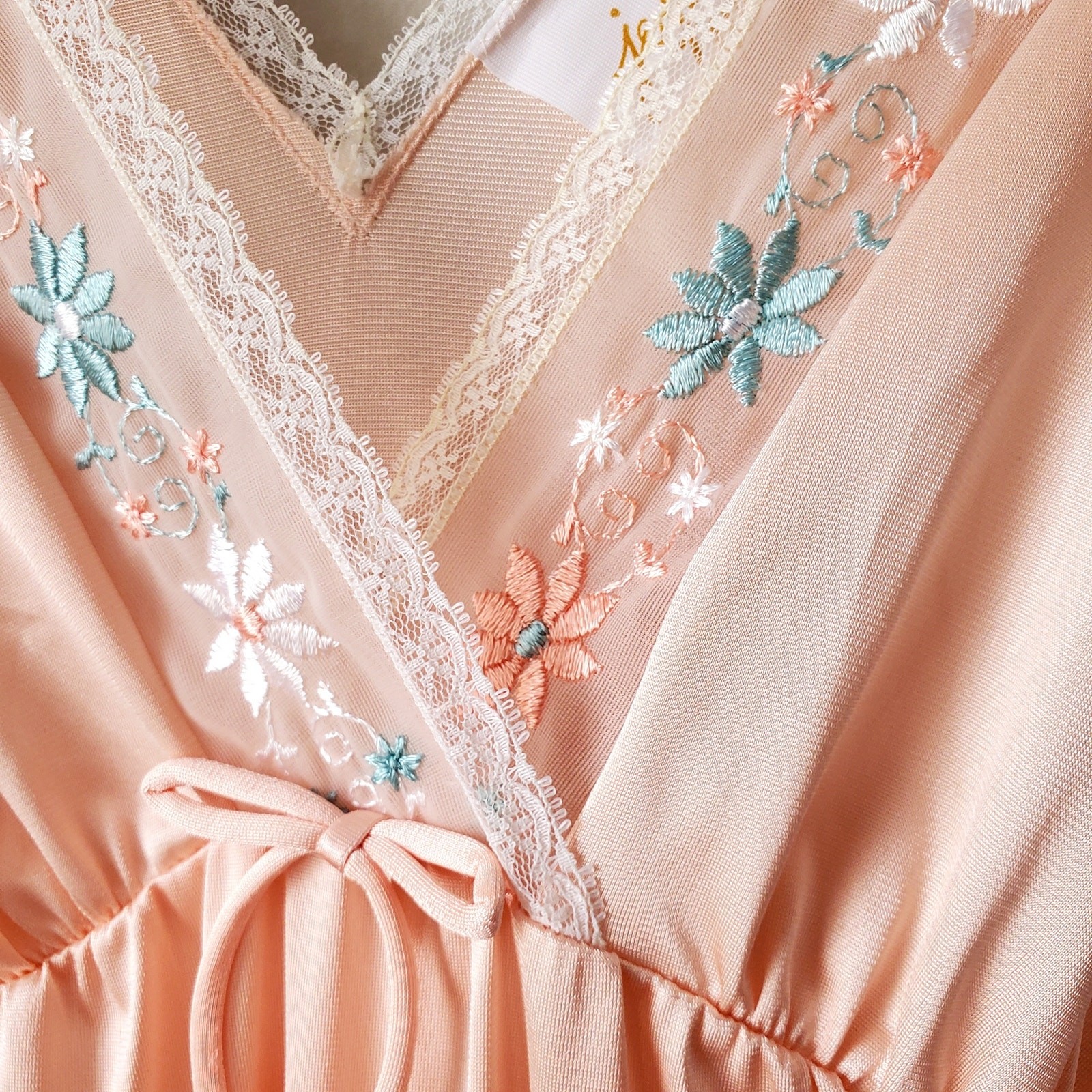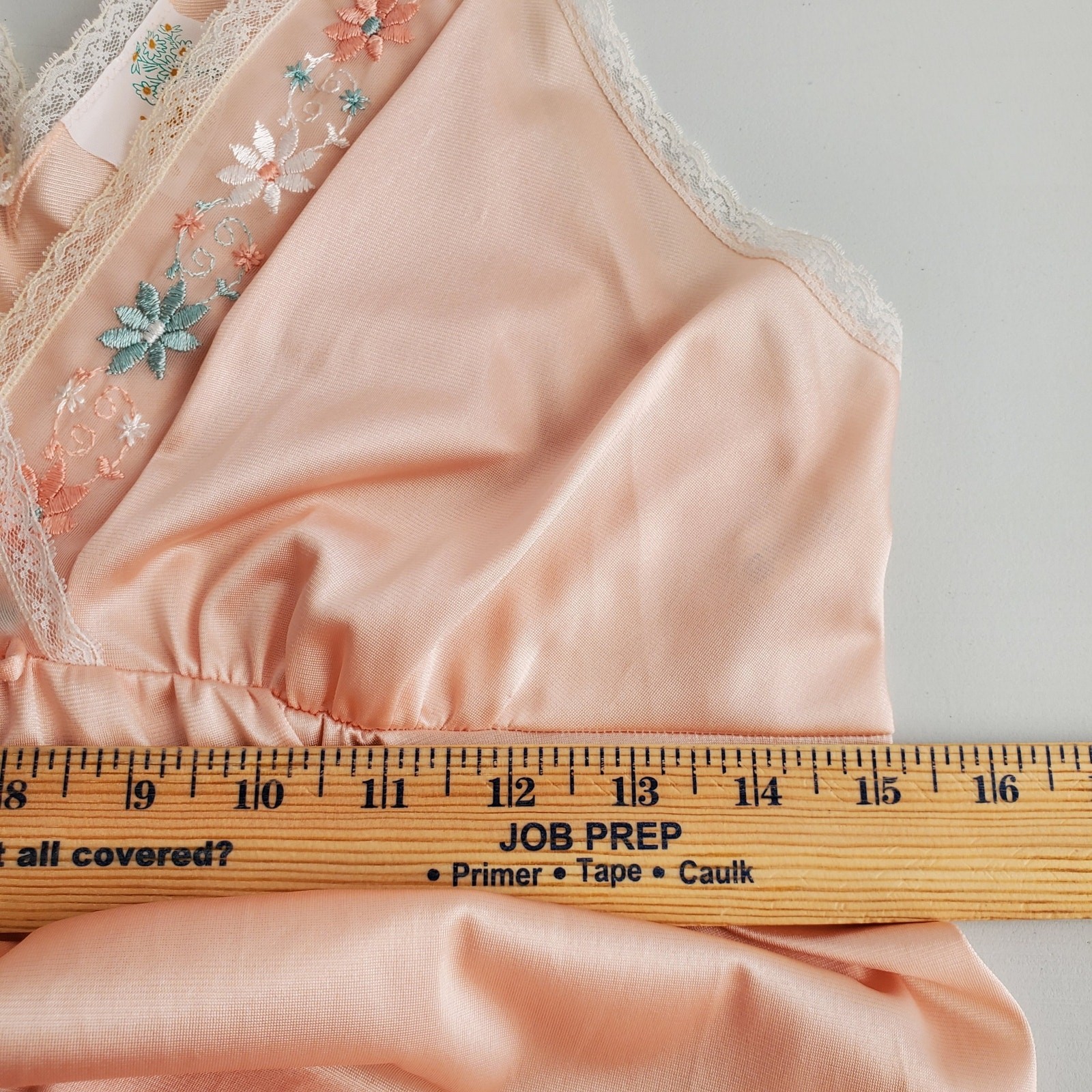 как выглядит VTG 70s 80s Lingerie Nightgown S Peach Lace Maxi Semi Sheer Delicate Dainty NEW фото