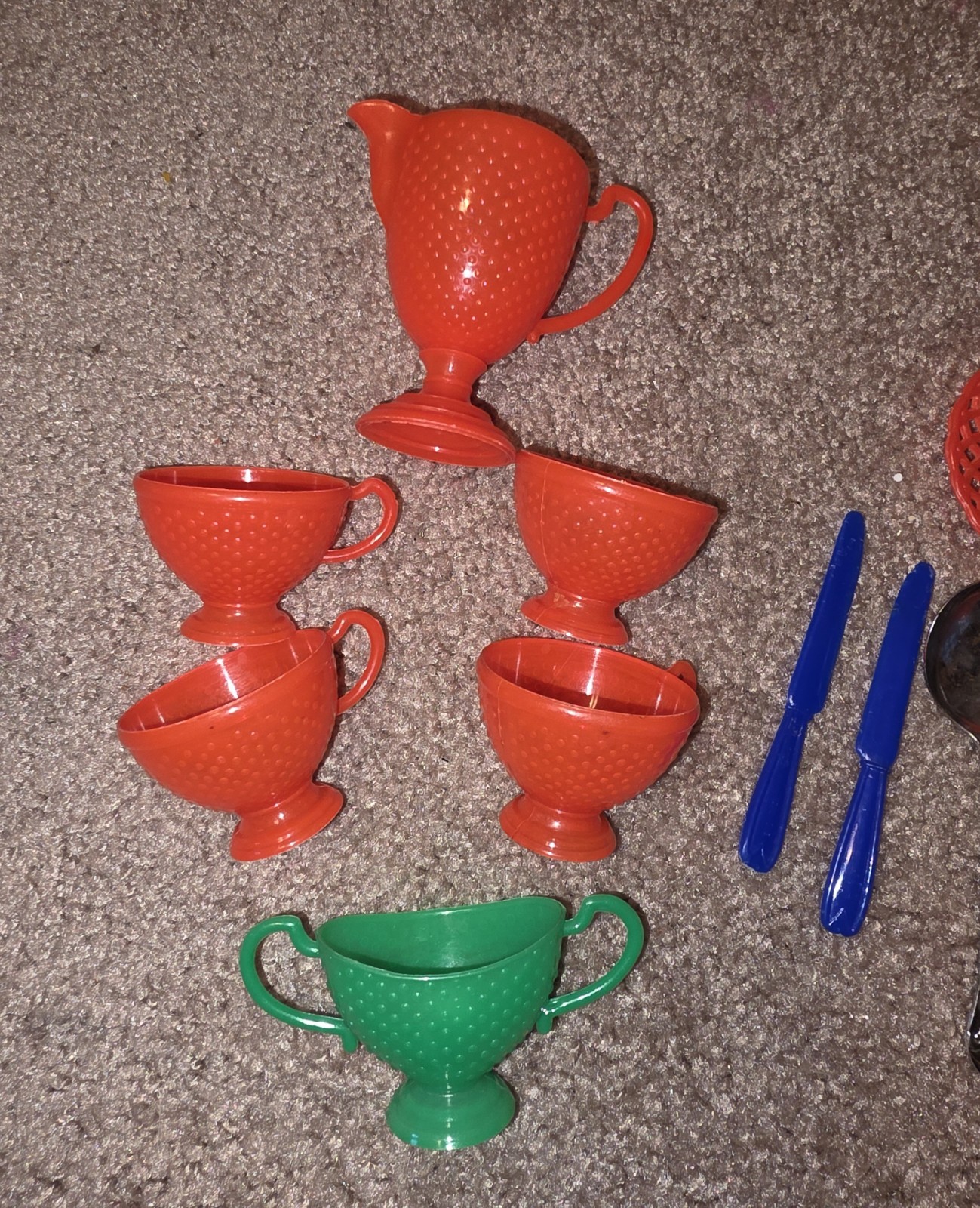 как выглядит Partial Set of Bright Colored Vintage Child Size Play Dishes Scalloped Design фото