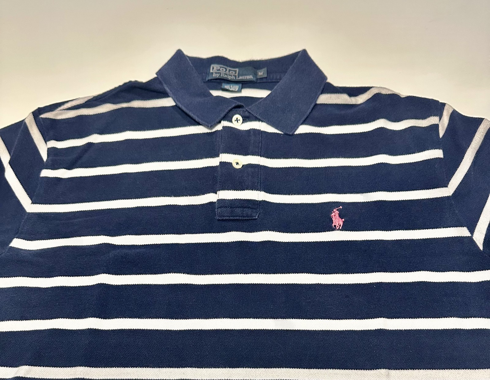 Polo Ralph Lauren Navy White Striped Polo Shirt M Short Sleeve 100 Cotton Logo