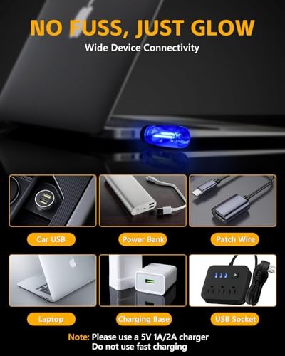 2PCS USB Lights for Car, Touch Adjustment Lights, Plug in USB Clear Glass Blue