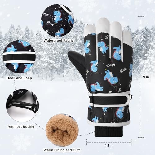 Ski Gloves for Kids, Waterproof Snow Gloves Cold Weather, Touchscreen Black