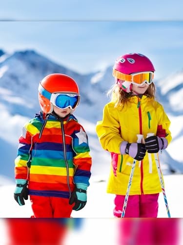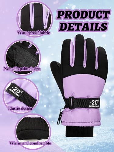 2 Pairs Kids Waterproof Winter Snow Gloves Ski 6-10 Years Light Purple, Cyan
