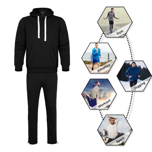 Men's Tracksuit 2 Piece Sets Fleece Casual Jogging Athletic Suits Medium Black
