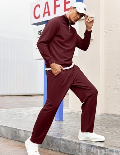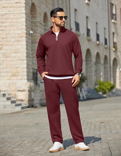 Men's Tracksuit 2 Piece Relaxed Fit Half-zip Sweatsuits XX-Large Wine Red