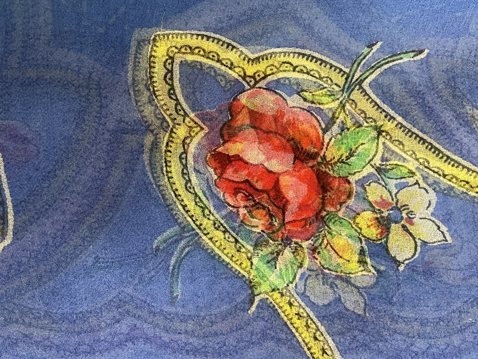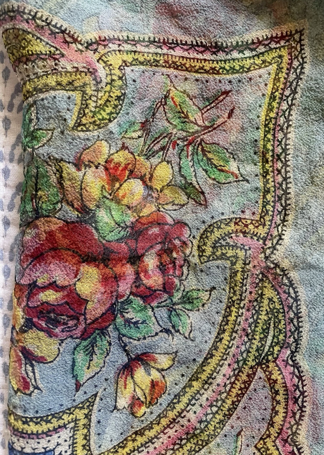 как выглядит Vintage 1950s Sheer Floral Scarf Red Roses Blue Yellow Gold Green 28" Square фото