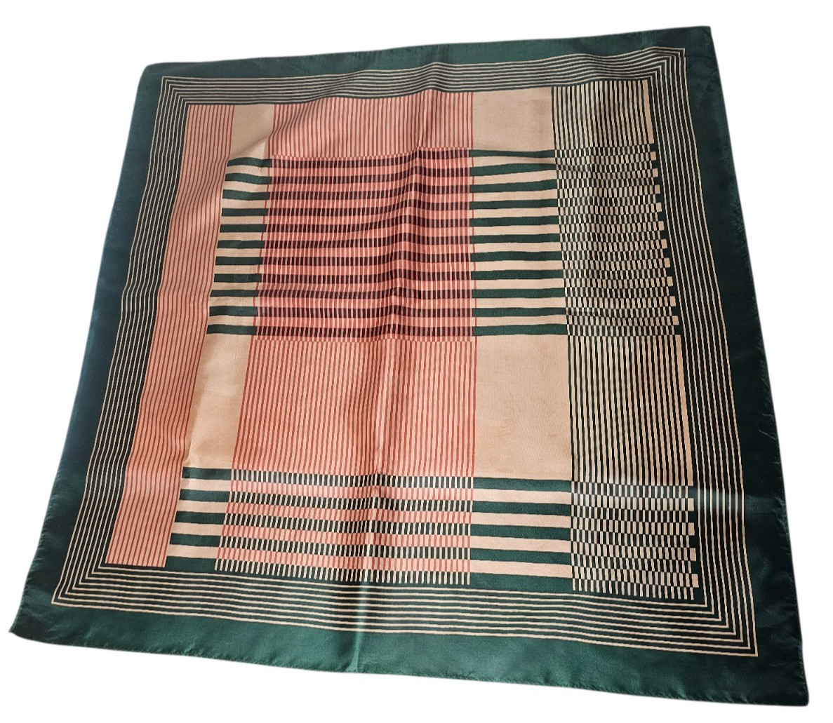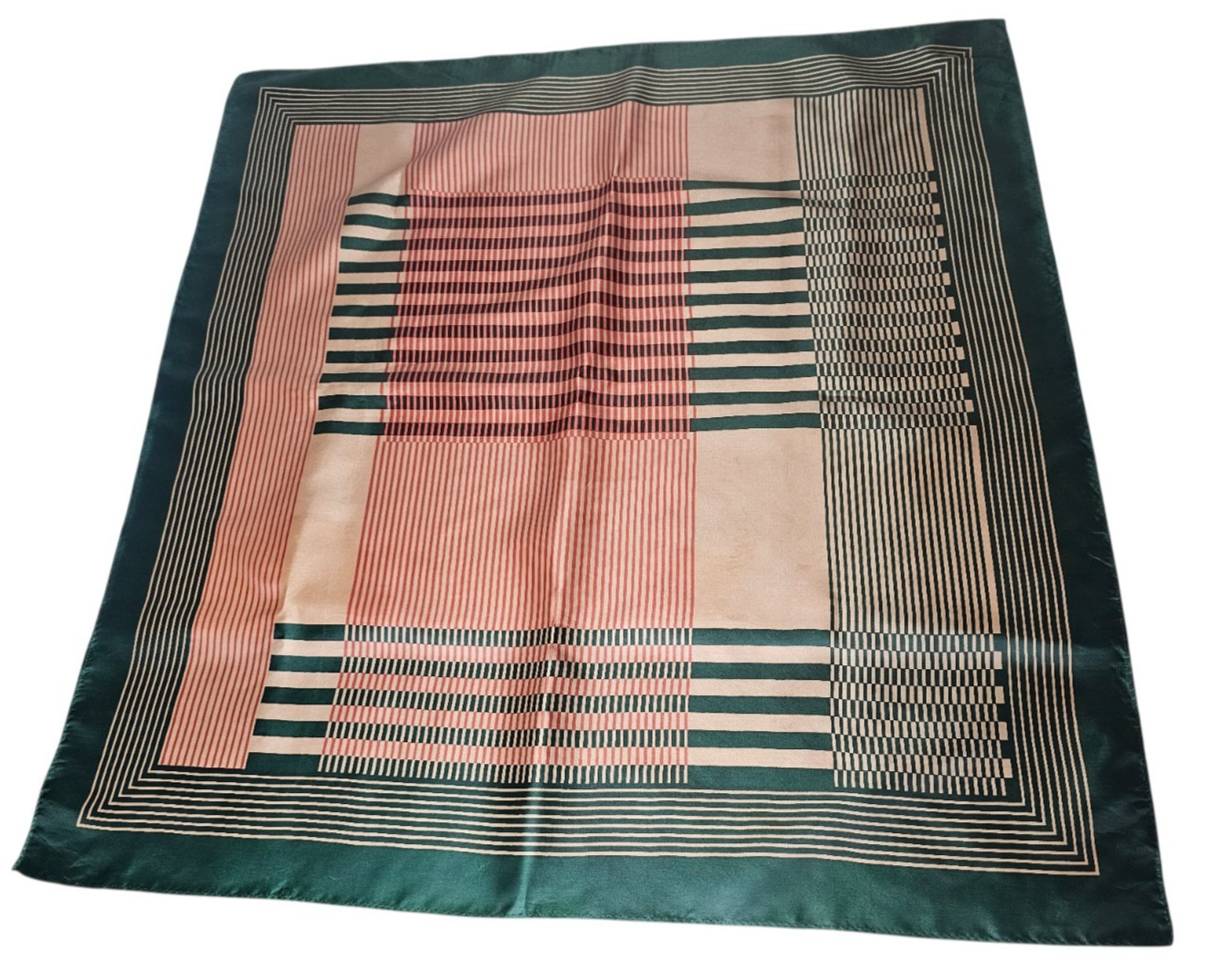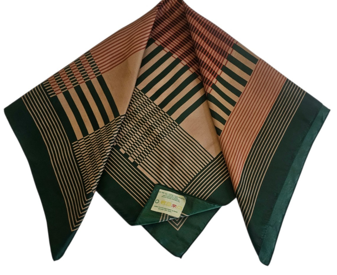 Vintage Totes Scarf Retro Geometric Stripes Dark Green Gold Brown 27 x27 Classy