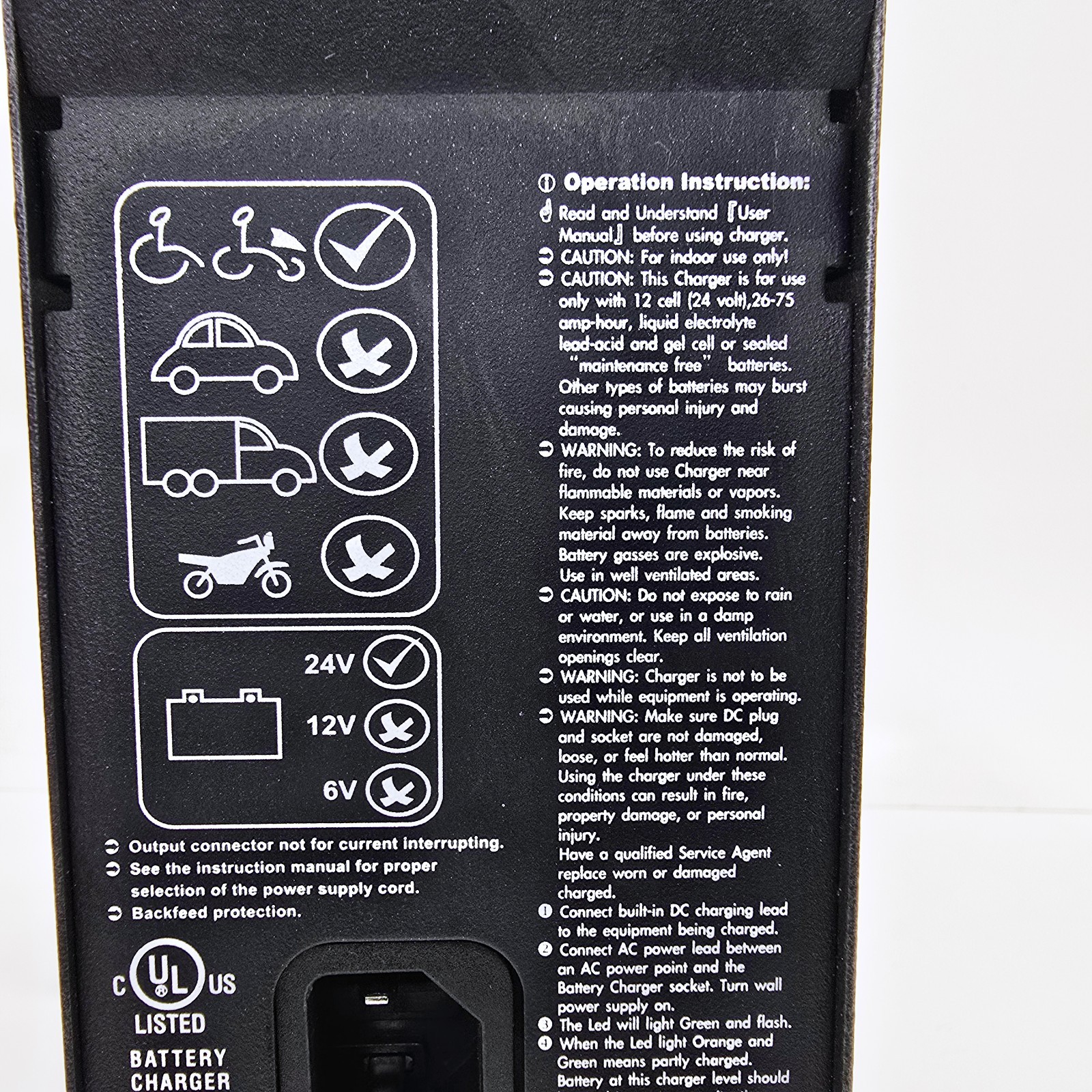 8 Amp 24 Volt Power Wheelchair Battery Charger 4C24080A needs power cord