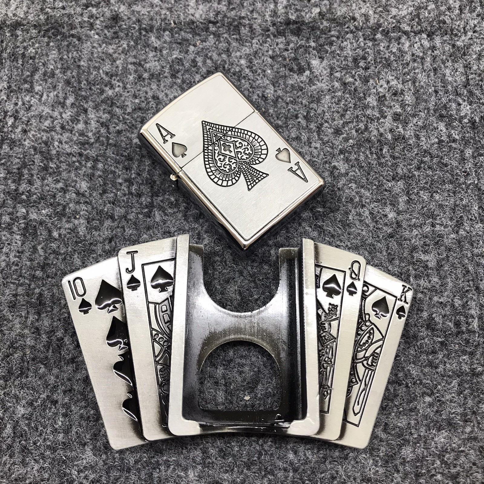 Antique Brushed Poker Belt Buckle with Lighter, Stock in US