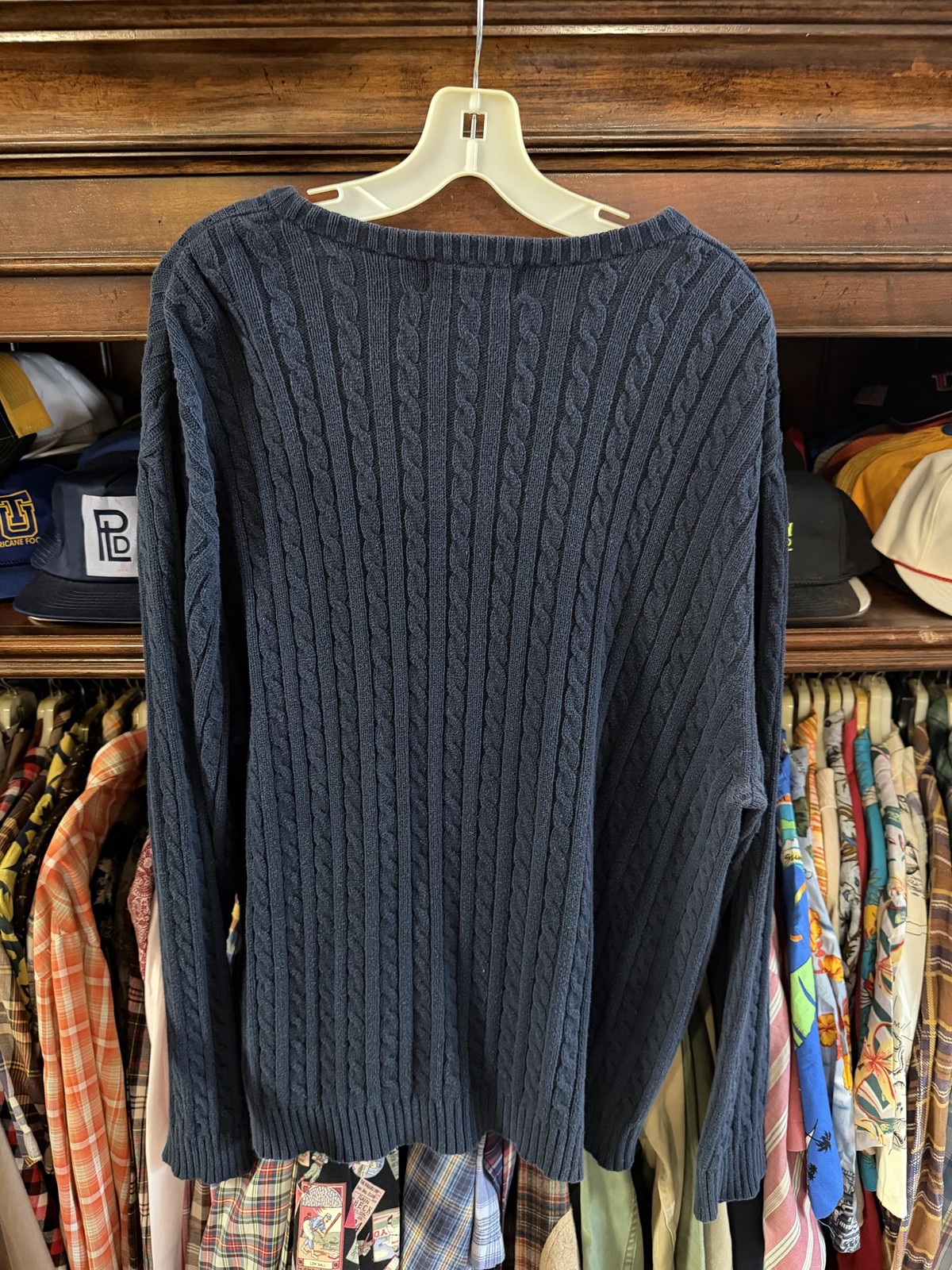 Chaps Sweater Mens Large Blue Cable Knit Crewneck Logo Cotton Pullover