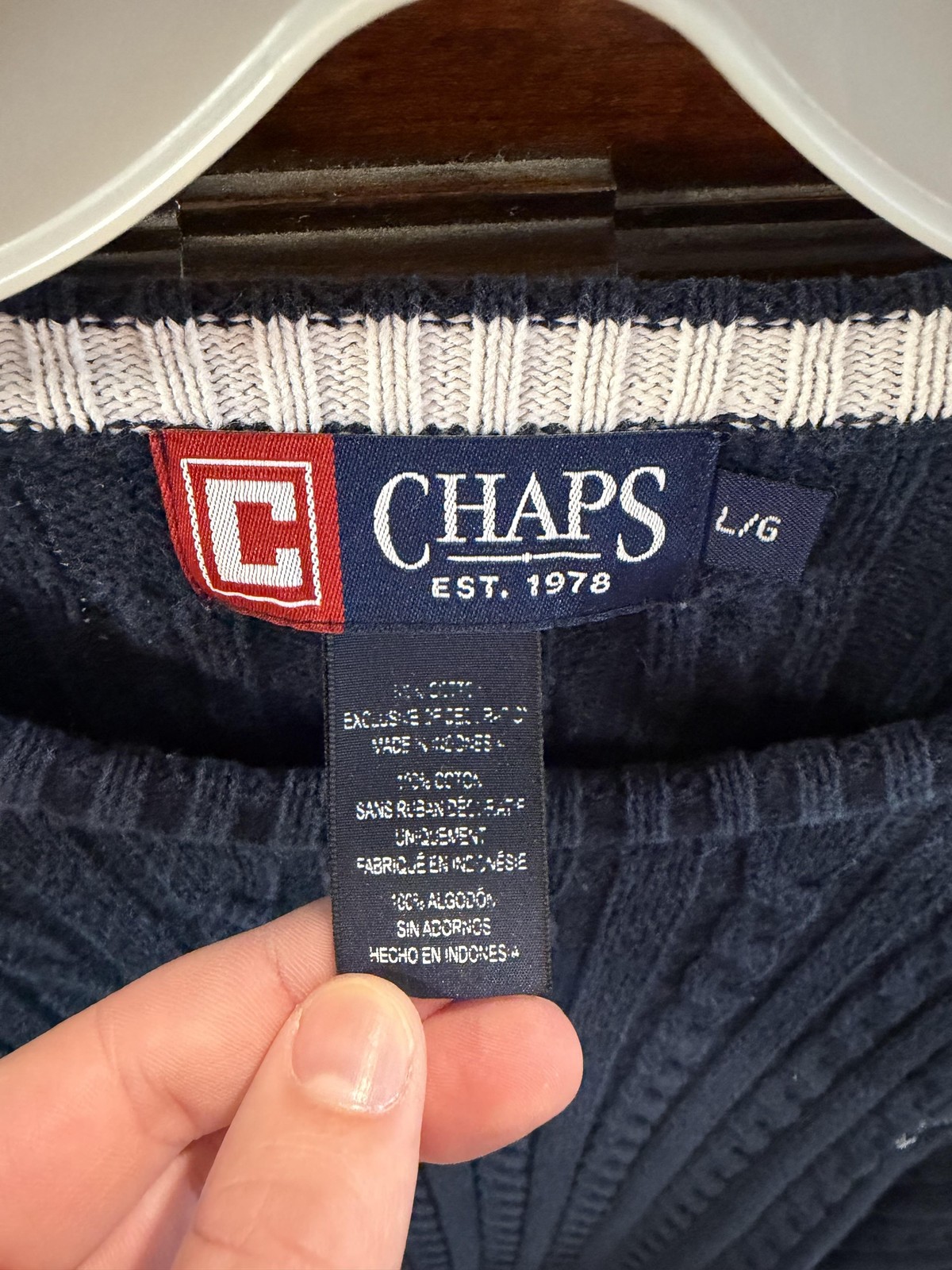 как выглядит Chaps Sweater Mens Large Blue Cable Knit Crewneck Logo Cotton Pullover фото