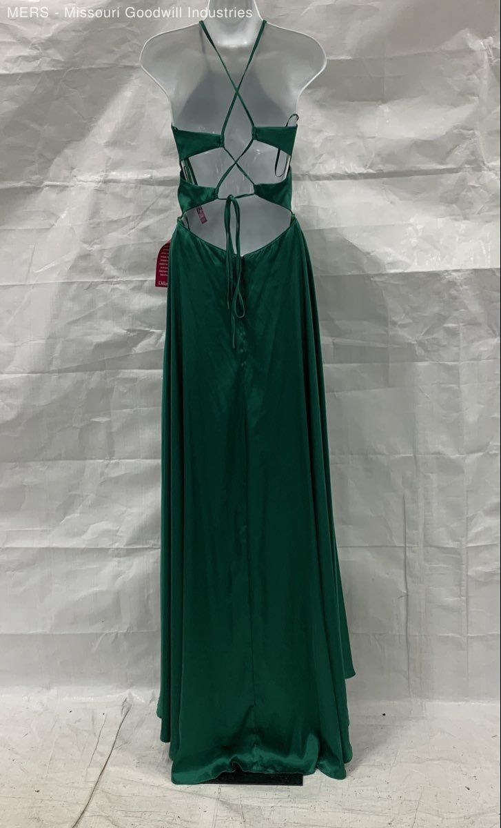 Blondie Nites Women Green Halter Cutout Gown Formal Dress Evening Size 5