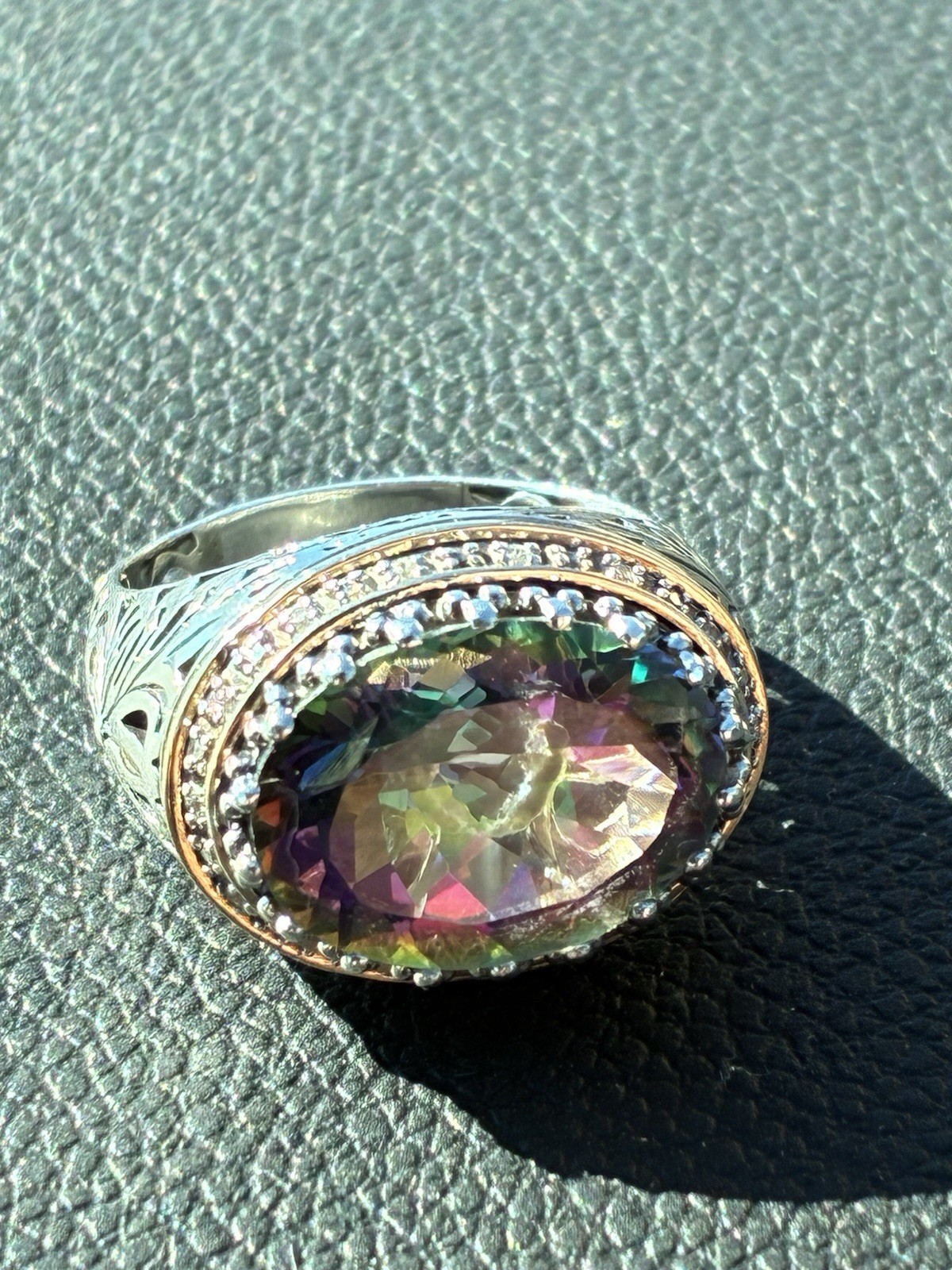 Rainbow Fire Mystical Topaz Stone Oval Cut 925 Sterling Silver Men s Ring