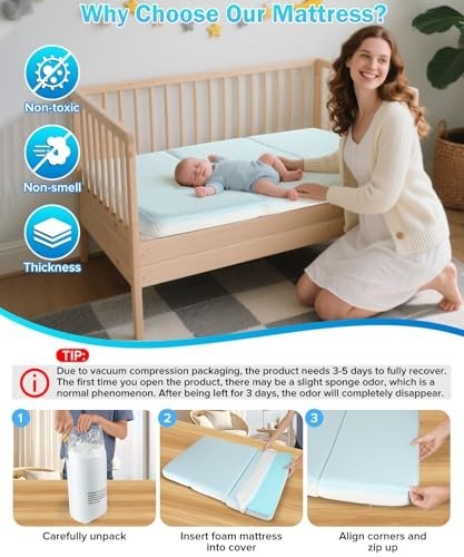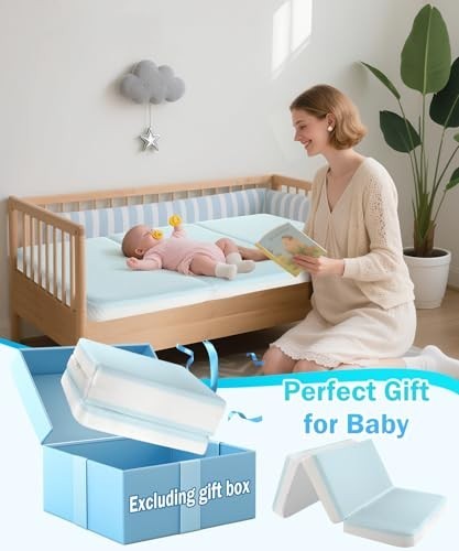 3'' Waterproof Trifold Crib Mattress 52x27.5 Inch Portable Memory Foam Nap Mat