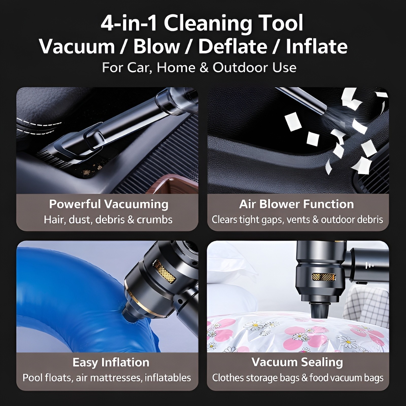 Cordless Handheld Vacuum Cleaner w/ Blower Strong Real Suction for Car and Home