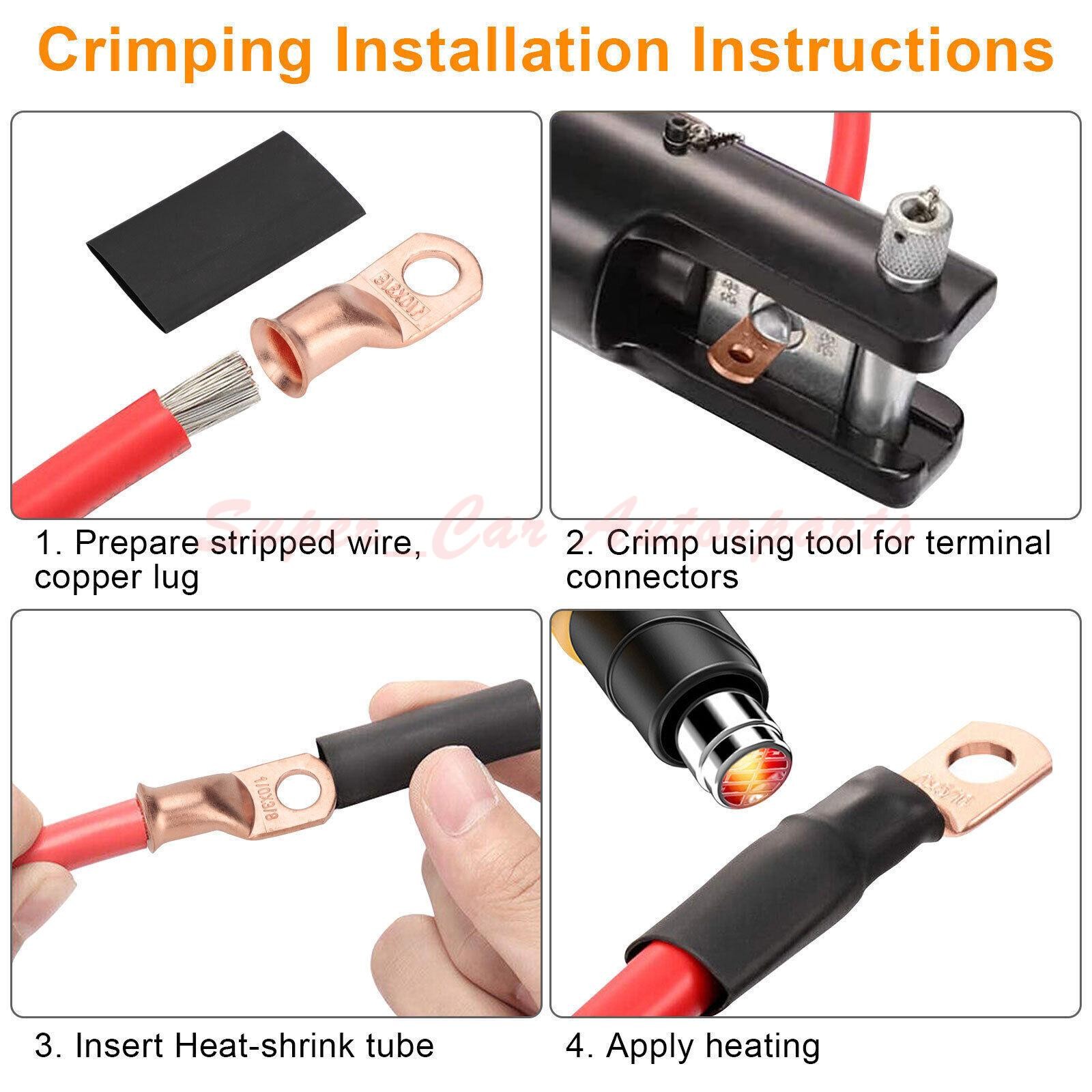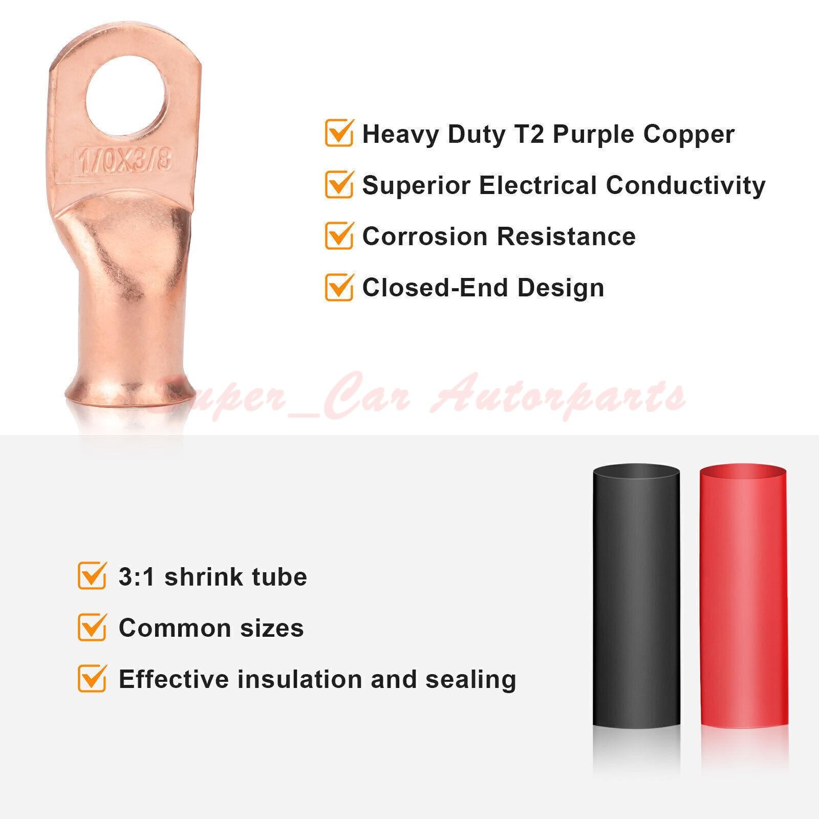 40pcs 1/0 AWG Gauge Copper Lugs w/RED BLACK Heat Shrink Ring Terminals Set