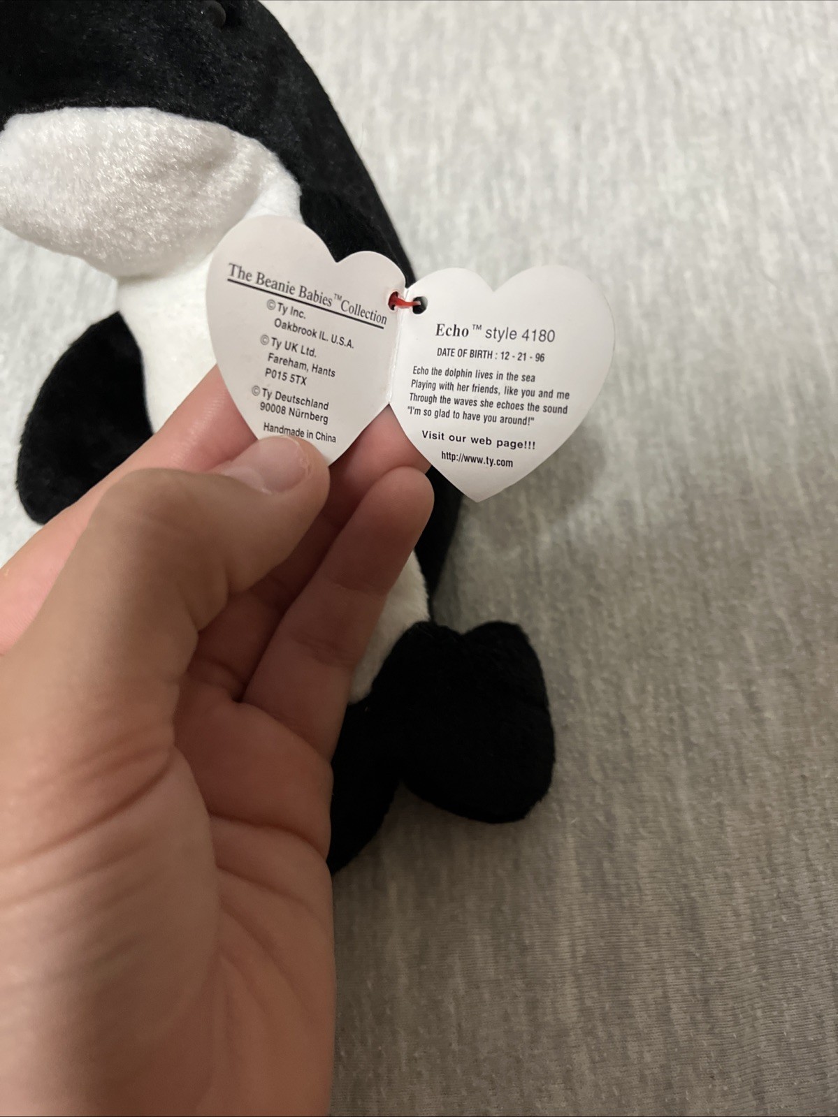1996 Ty Beanie Babies Error Waves The Orca With Echo The Dolphin Tags