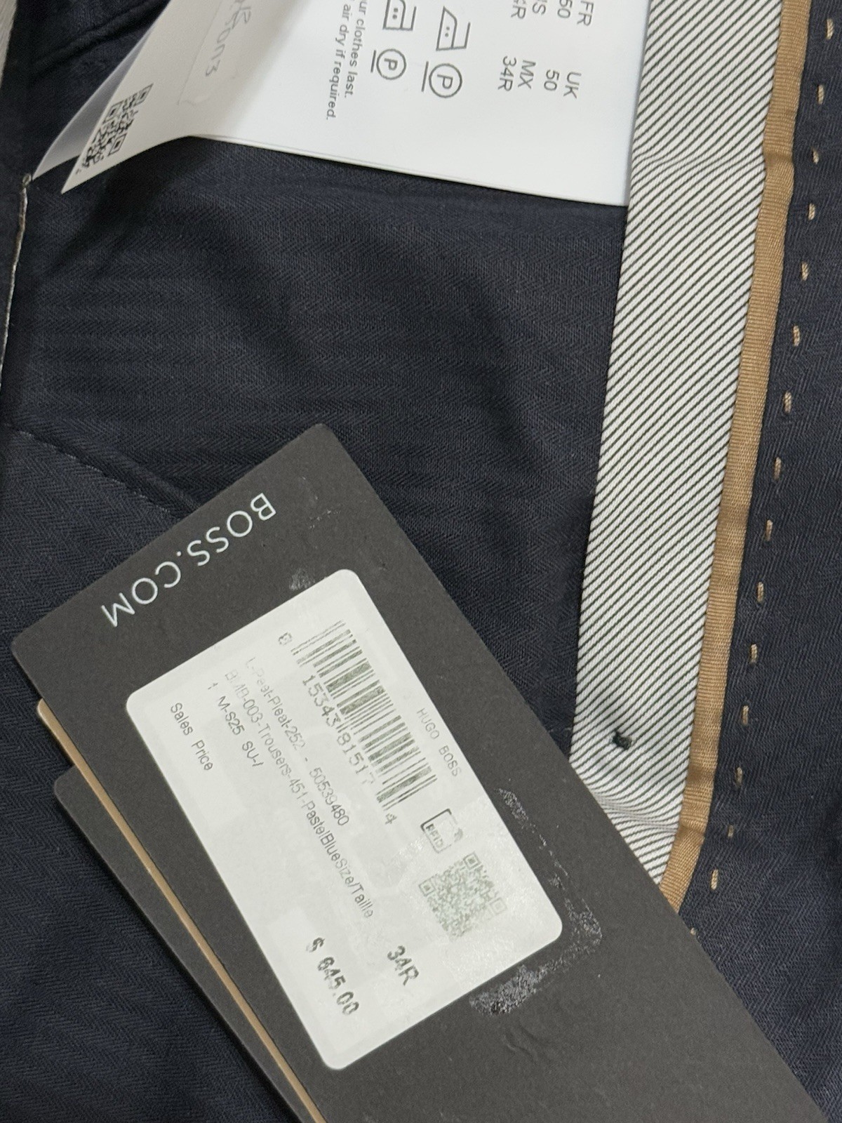 Hugo Boss Men s L-Peet-Pleat-252 trousers In Pastel Blue Color Size 34R .