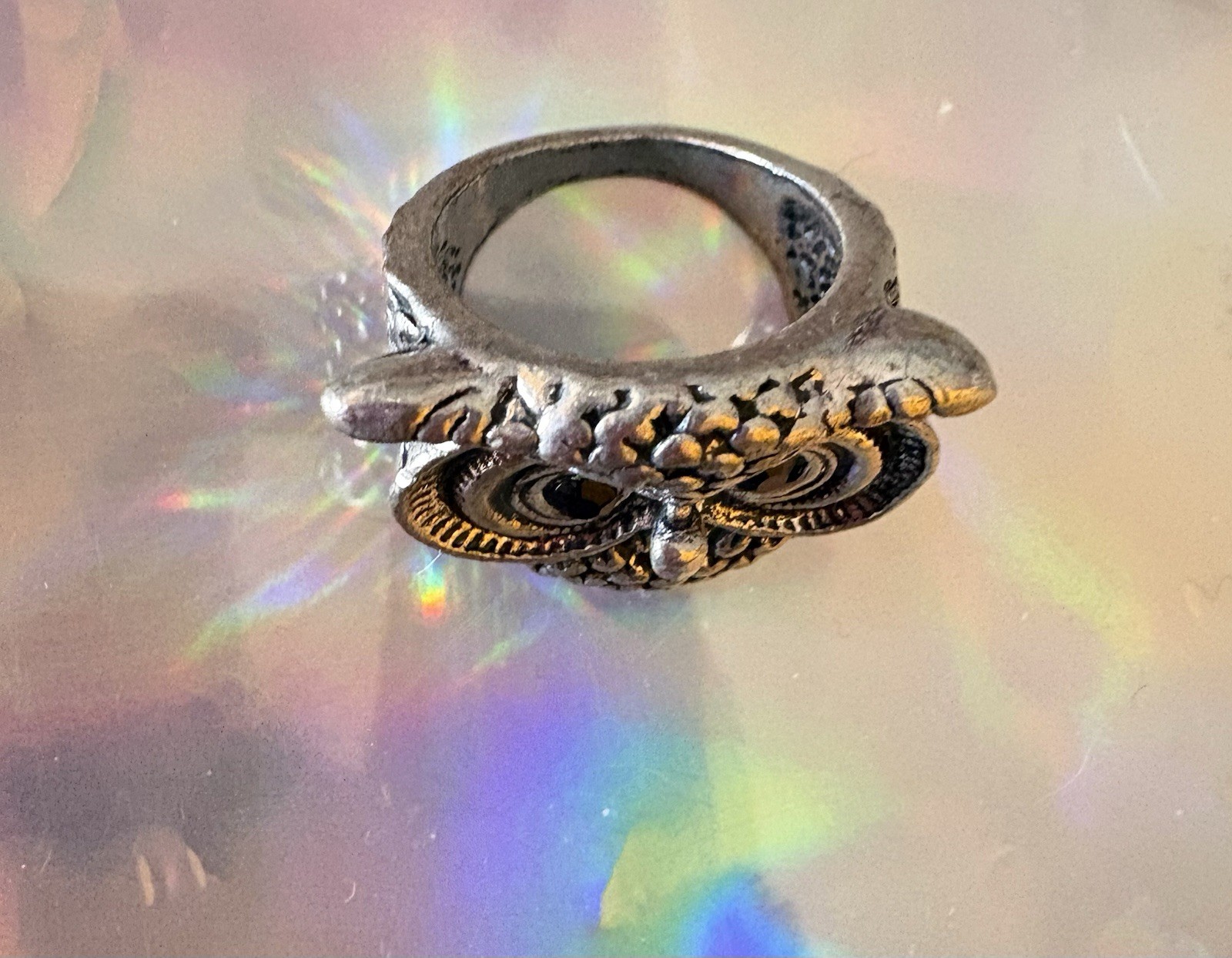 как выглядит Owl Head Sterling Ring Size 6.5-S фото